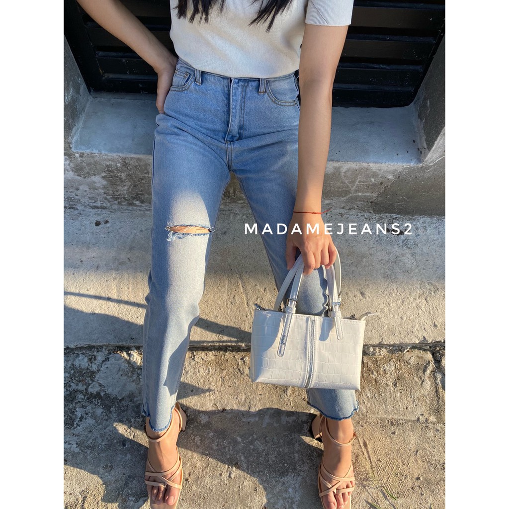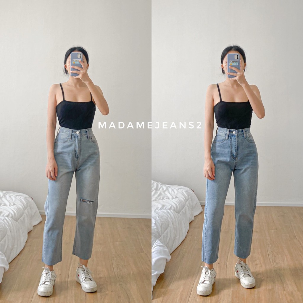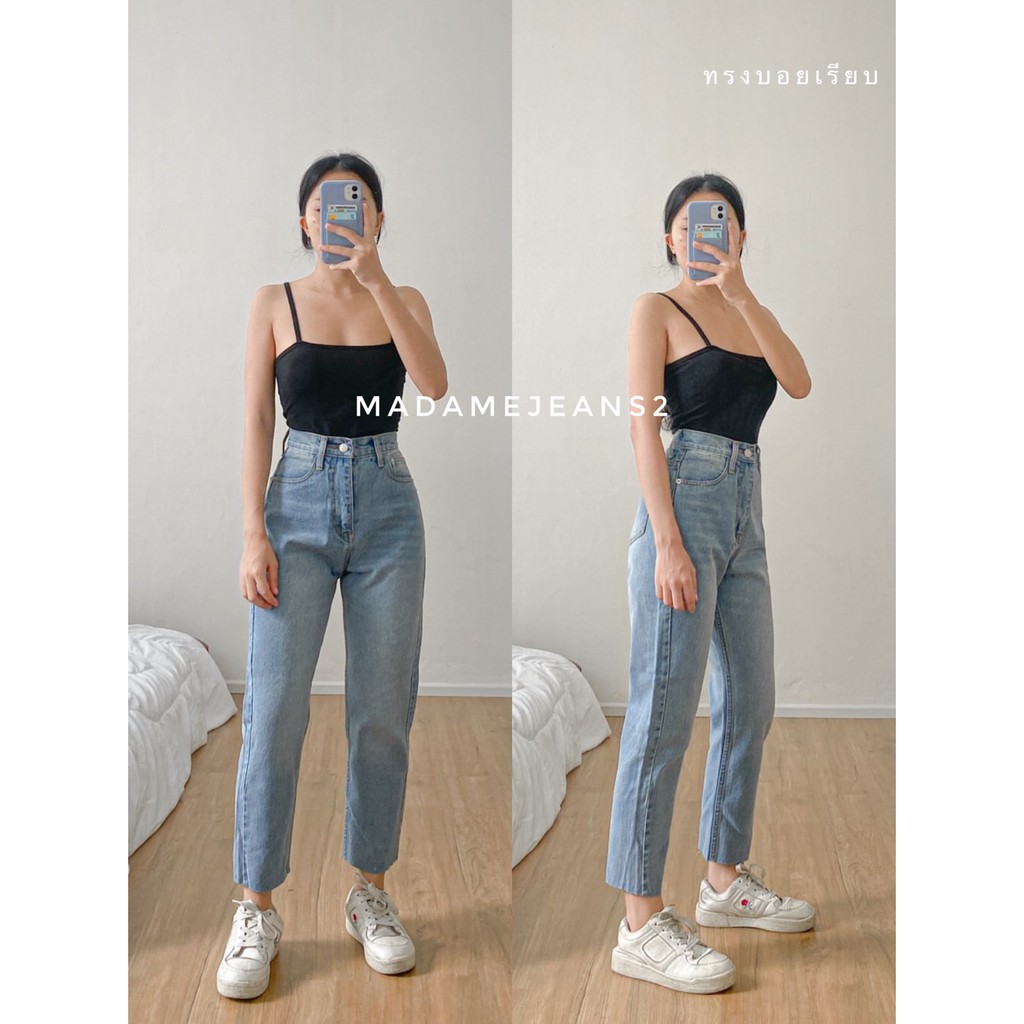 กางเกงยีนส์ **กางเกงยีนส์ทรงบอย รุ่น เรียบ-ขาดเข่า** รุ่นฮิต ขายาวทรงบอย