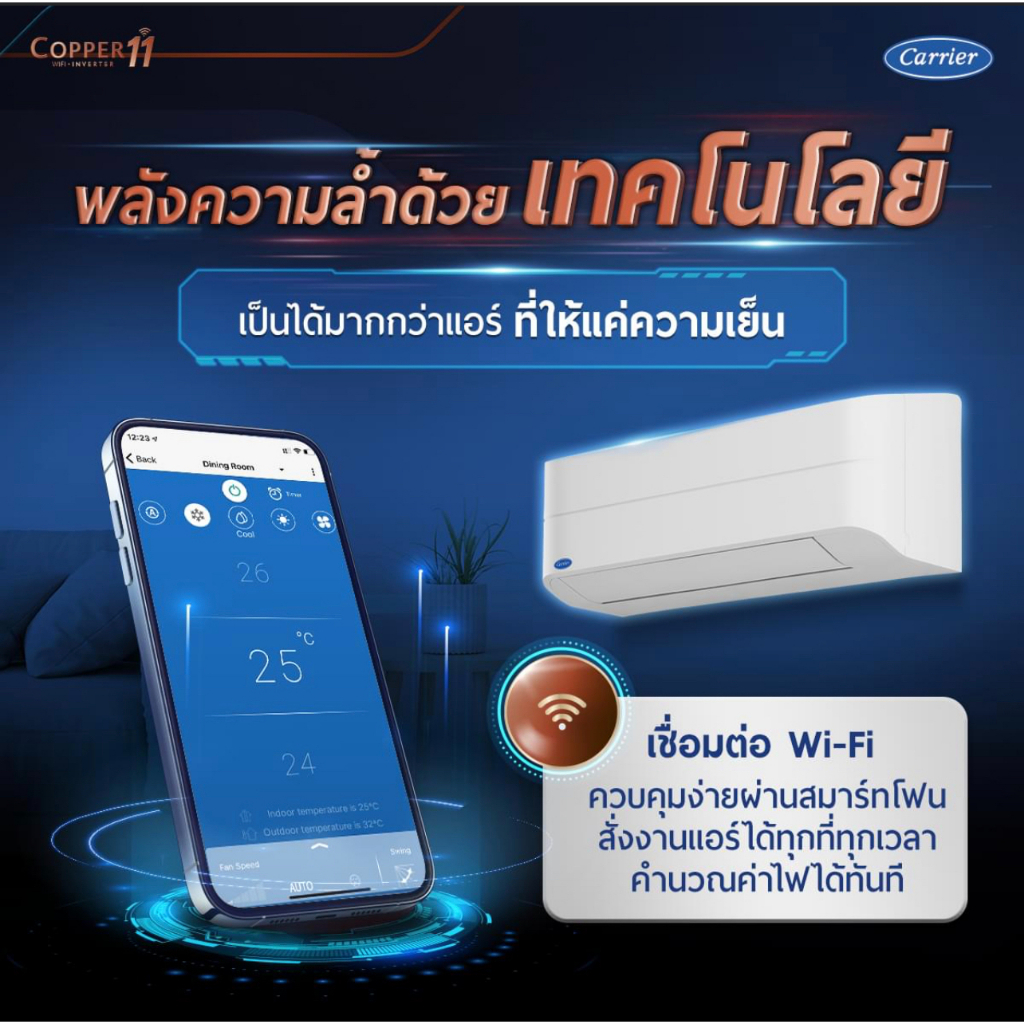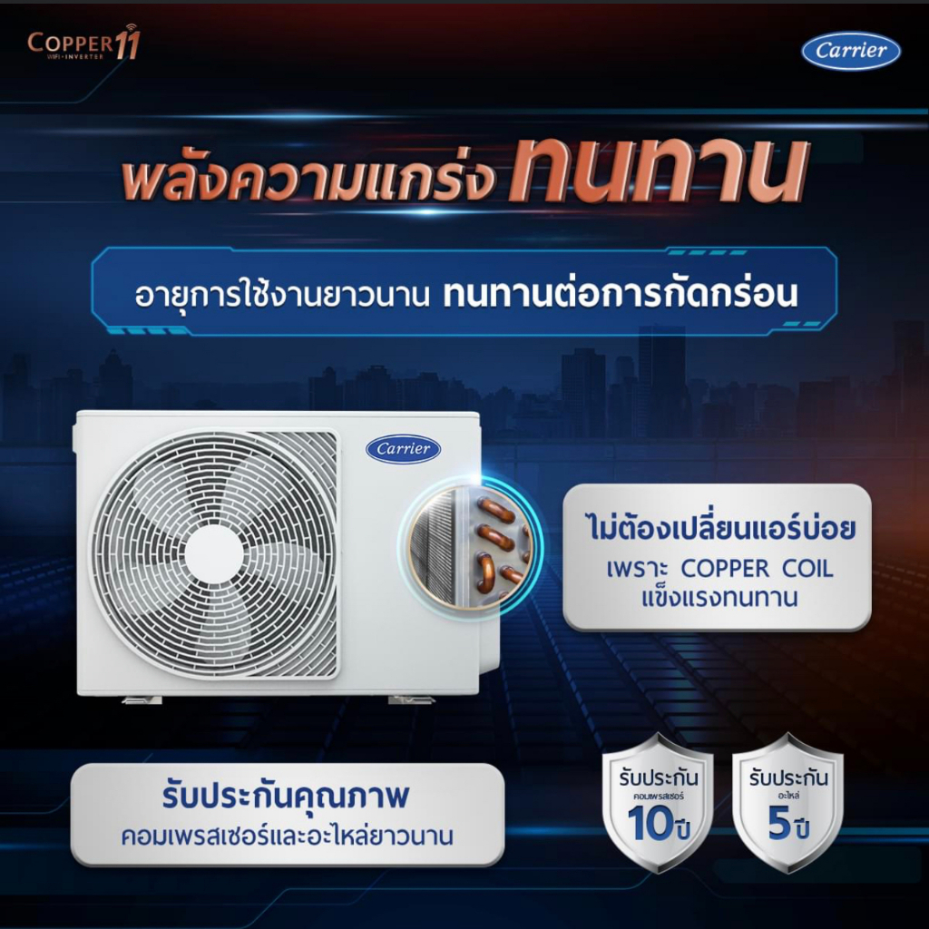 CARRIER แอร์ติดผนังระบบอินเวอร์เตอร์รุ่น COPPER11 WIFI ขนาด 9200-25200 BTU