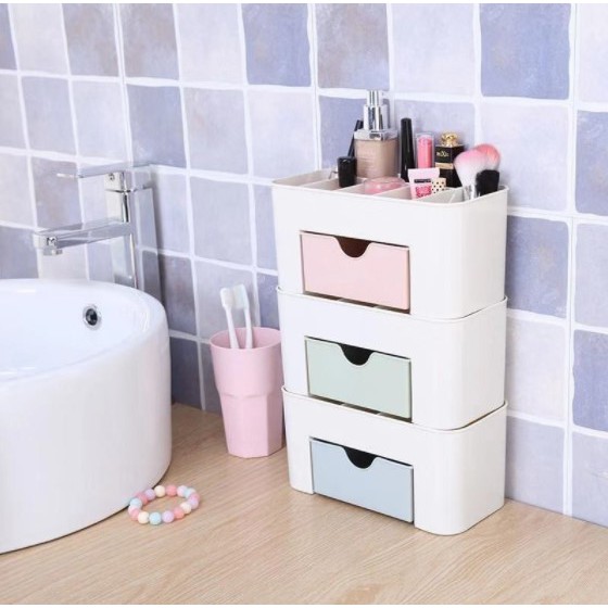 กล่องใส ่ของ 6 ช่อง อุปกรณ์จัดเก็บอเนกประสงค์ แบบมีลิ้นชัก กล่องใส่เครื่องสำอาง ที่ใส่เครื่องสำอาง กล่องเก็บของบนโต๊ะ