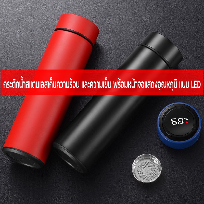 กระบอกน้ำสแตนเลส จอแสดงผล LED กระบอกน้ำเก็บอุณหภูมิ แก้วน้ำเก็บอุณหภูมิ กระบอกน้ำอัจฉริยะ 500ml กระติกน้ำเก็บ ร้อน เย็น