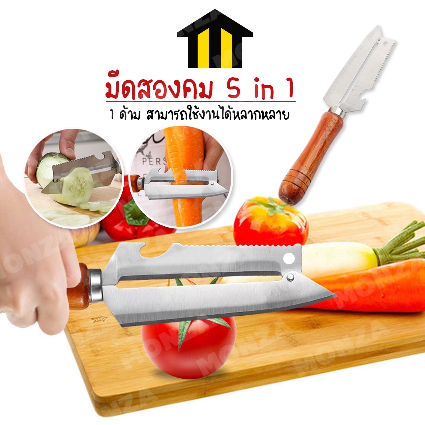 Monza มีดสองคม มีดปอกเปลือก พร้อมที่ขูดเกล็ดปลาและที่เปิดขวด No.Y875