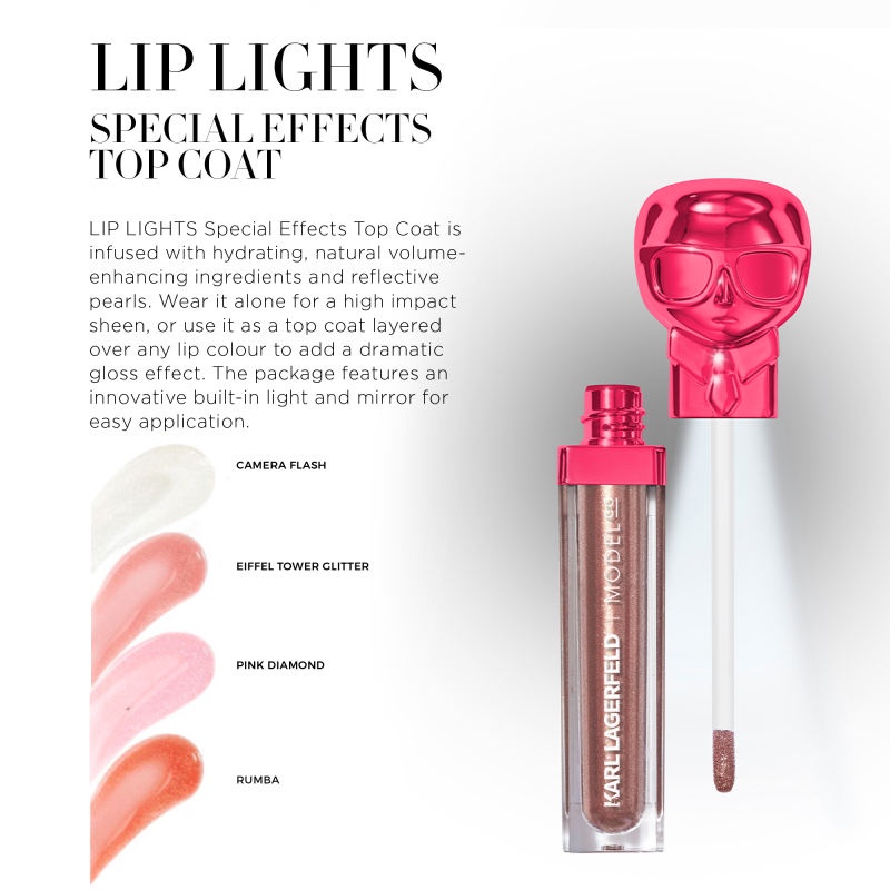 Karl Lagerfeld + Model Co LIP LIGHTS SPECIAL EFFECTS TOP COAT ลิปสติก ท็อปโค้ท 6 ml. ไม่มีไฟ