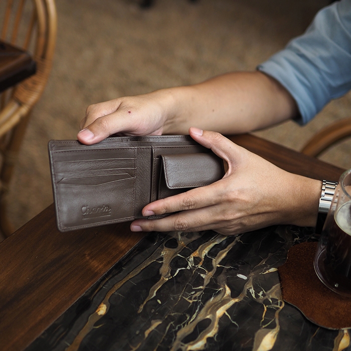 ใบพับใช้ได้ทั้ง ช/ญ นุ่มมาก รุ่น Paul มีช่องใส่เหรียญ กระเป๋าสตางค์หนังวัวแท้