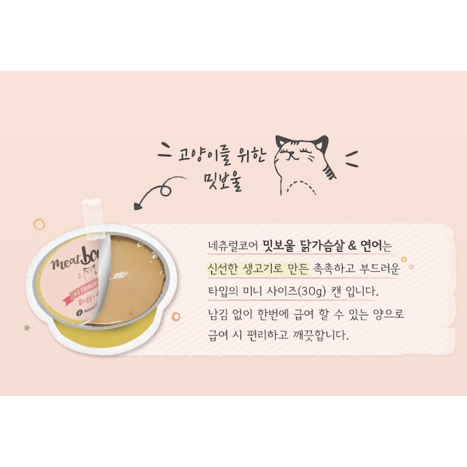 Natural Core Meat Bowl อาหารเเบบเปียกสำหรับเเมว เนื้อสัตว์ 100% เนื้อไก่ ปลาค๊อด เเละปลาเเซลมอน นำเข้าจากเกาหลี🇰🇷