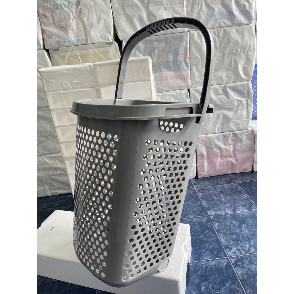 ตะกร้าผ้าล้อลาก สีเทาเข้ม สเปซเกรย์ Hamper with wheel Space Grey Lift And Go BK-137-5