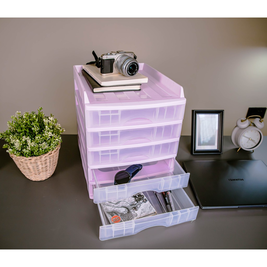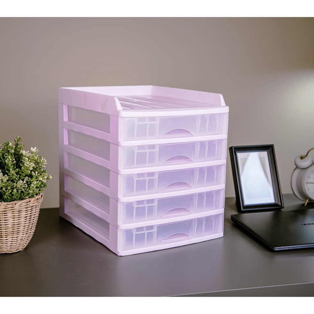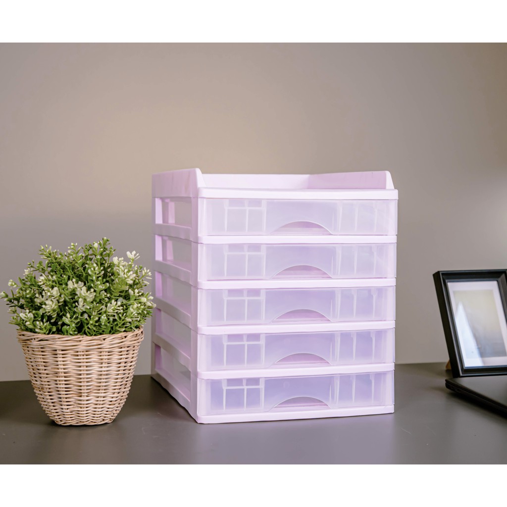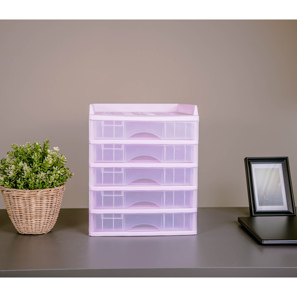 ตู้ลิ้นชัก 5 ชั้น พร้อมถาดบน A-109-1 สีม่วงพาสเทล Organizer with upper tray Purple Pastel color