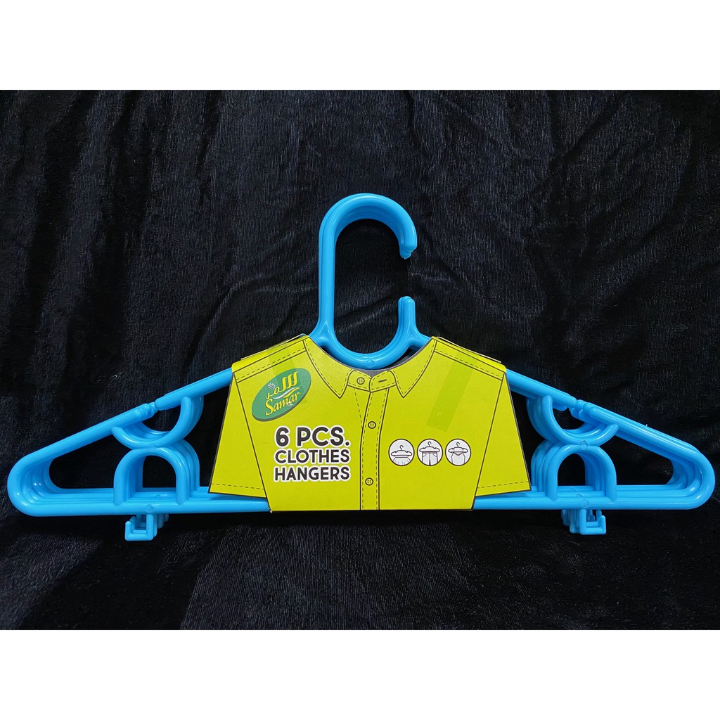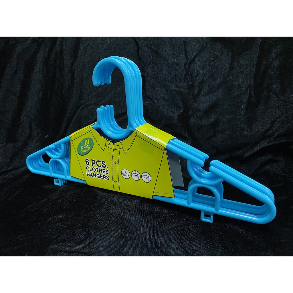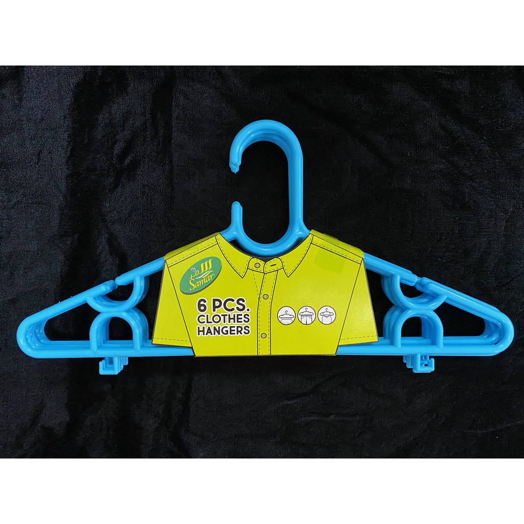 ไม้แขวนเสื้อ แพ็ค 6 สีฟ้าลายโค้งClothes Hangers Pack size of 6 pcs blue Color curve design