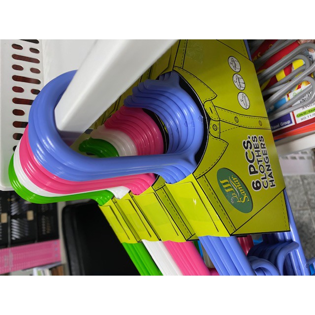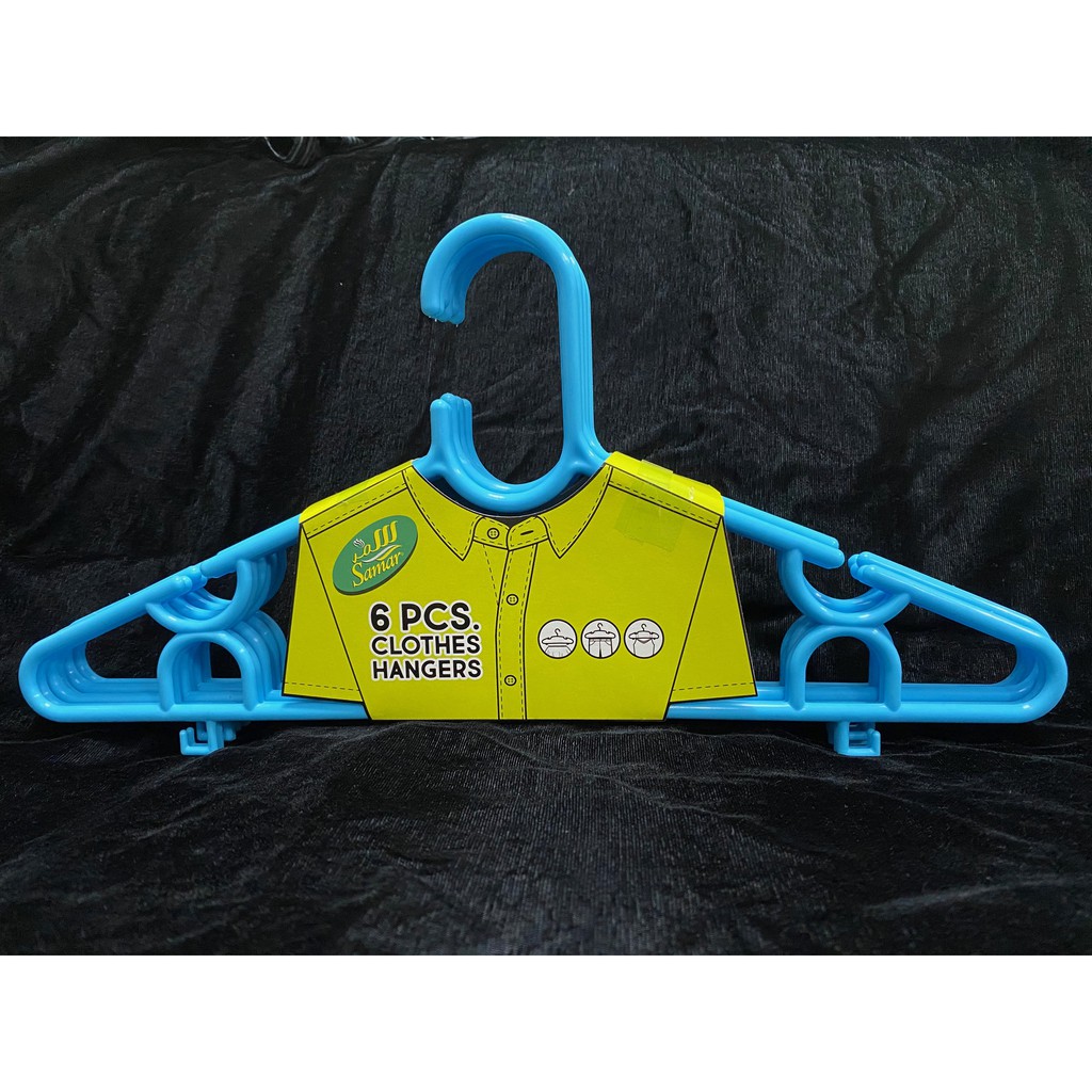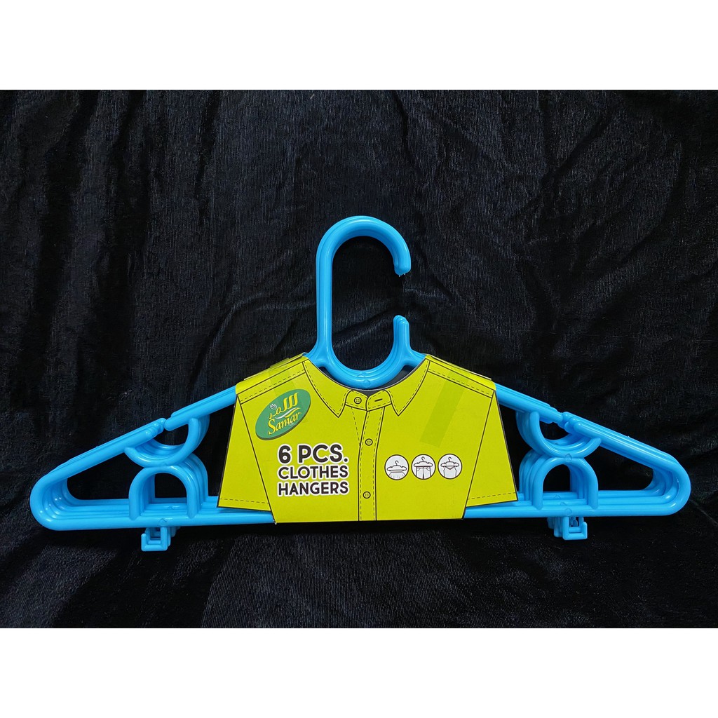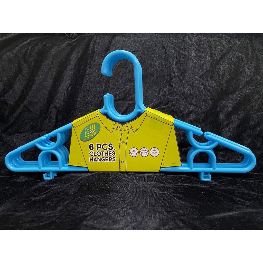 ไม้แขวนเสื้อ แพ็ค 6 สีฟ้าลายโค้งClothes Hangers Pack size of 6 pcs blue Color curve design
