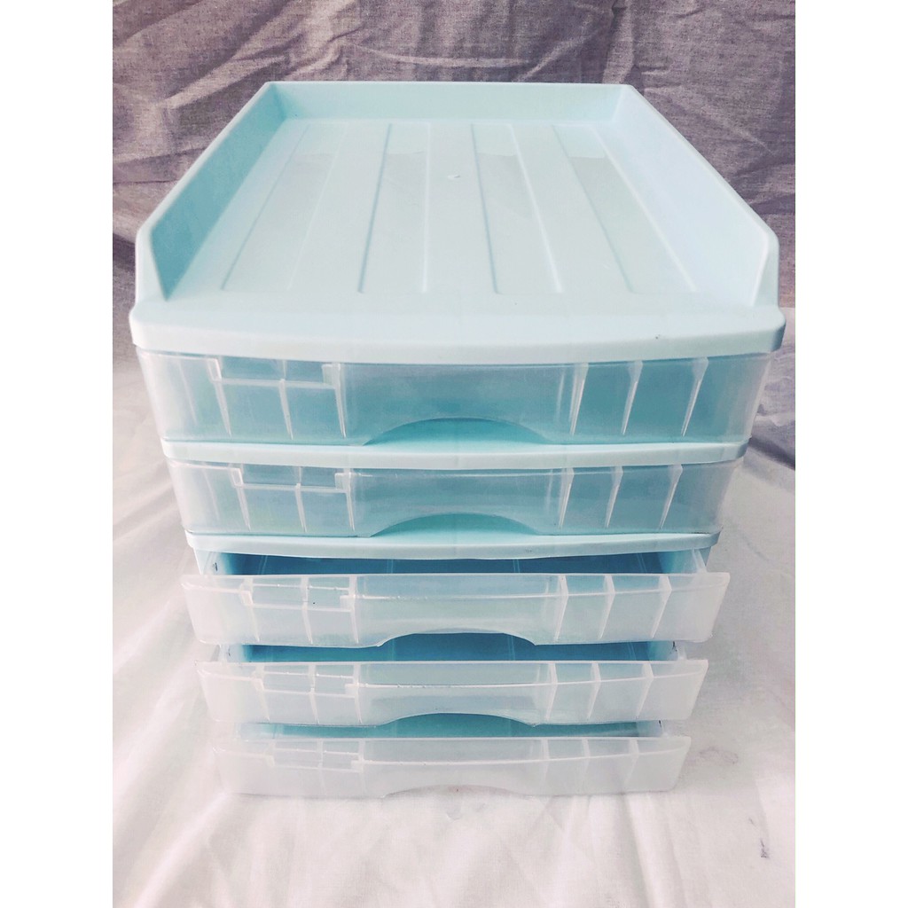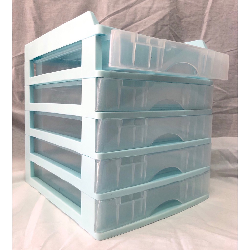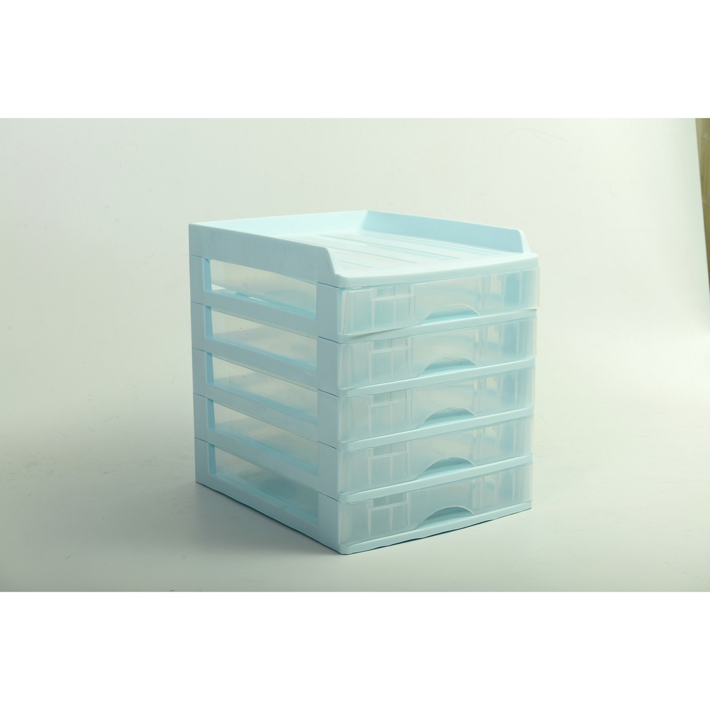ตู้ลิ้นชัก 5 ชั้น พร้อมถาดบน สีฟ้าพาสเทล รุ่น A109-2 Organizer with upper tray BluePastel color A-109-2
