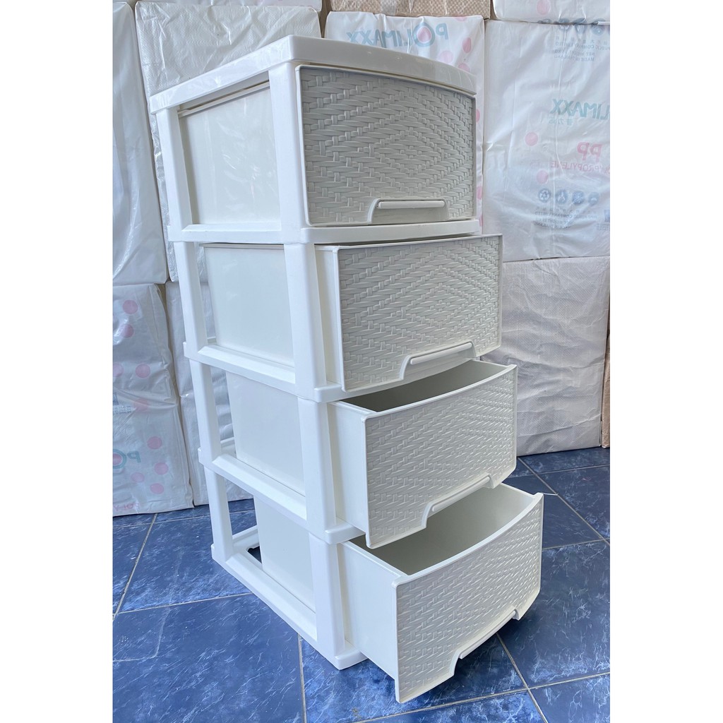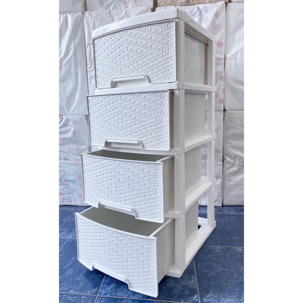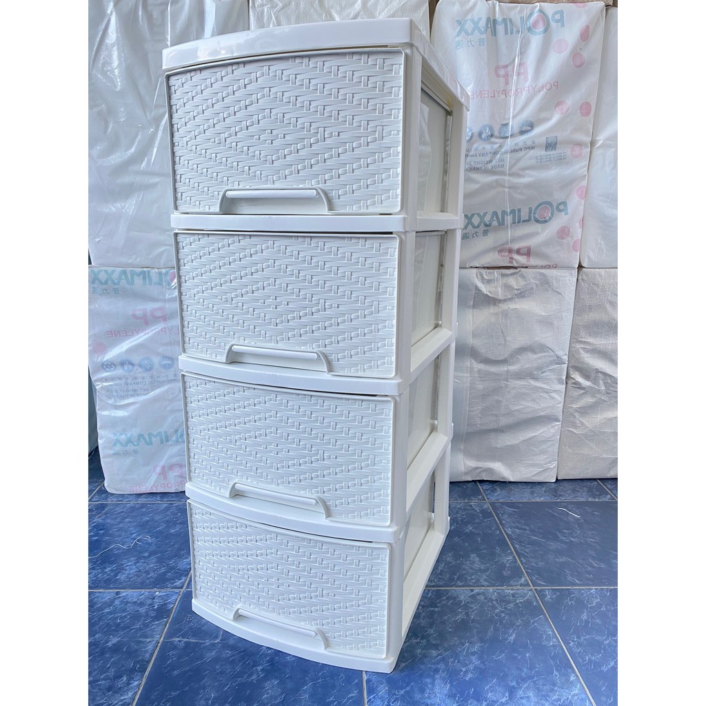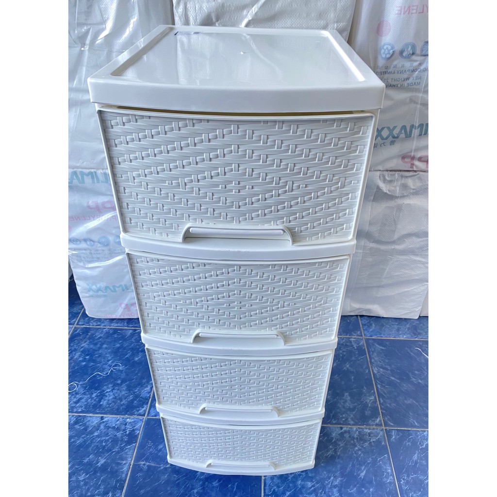 ตู้ลิ้นชักขาวโครงขาวใหญ่ 4 ชั้น ลายข้าวหลามตัด รุ่น A-002-12 Drawers 4 Tiers