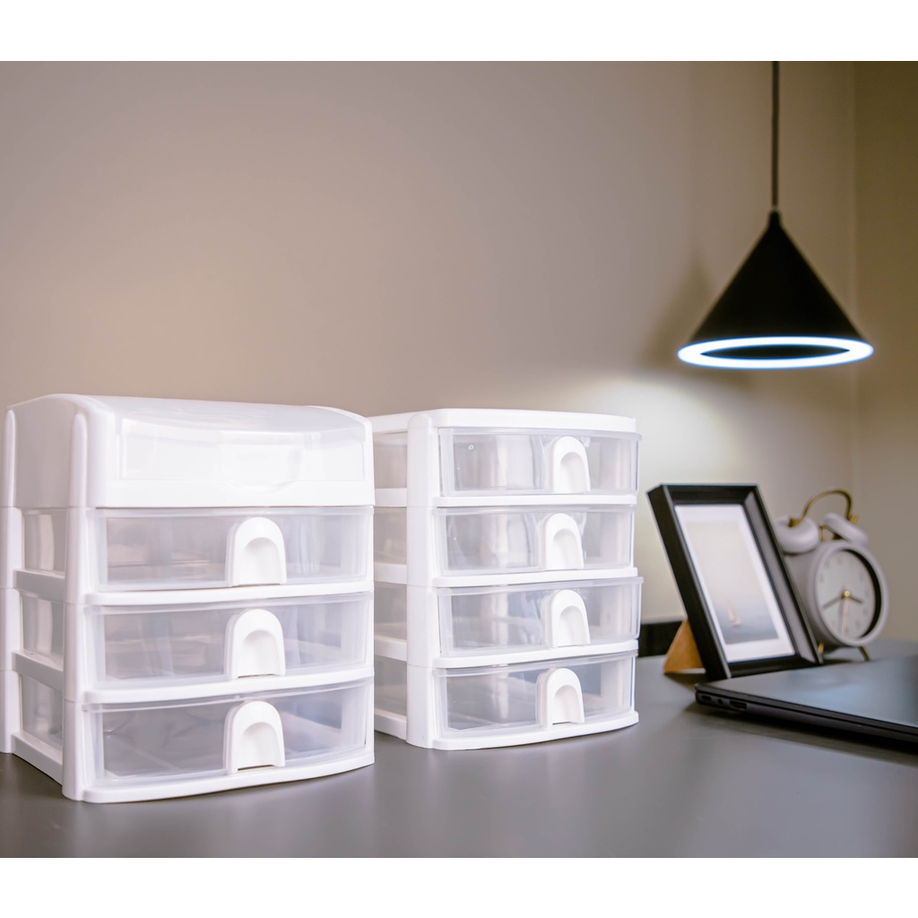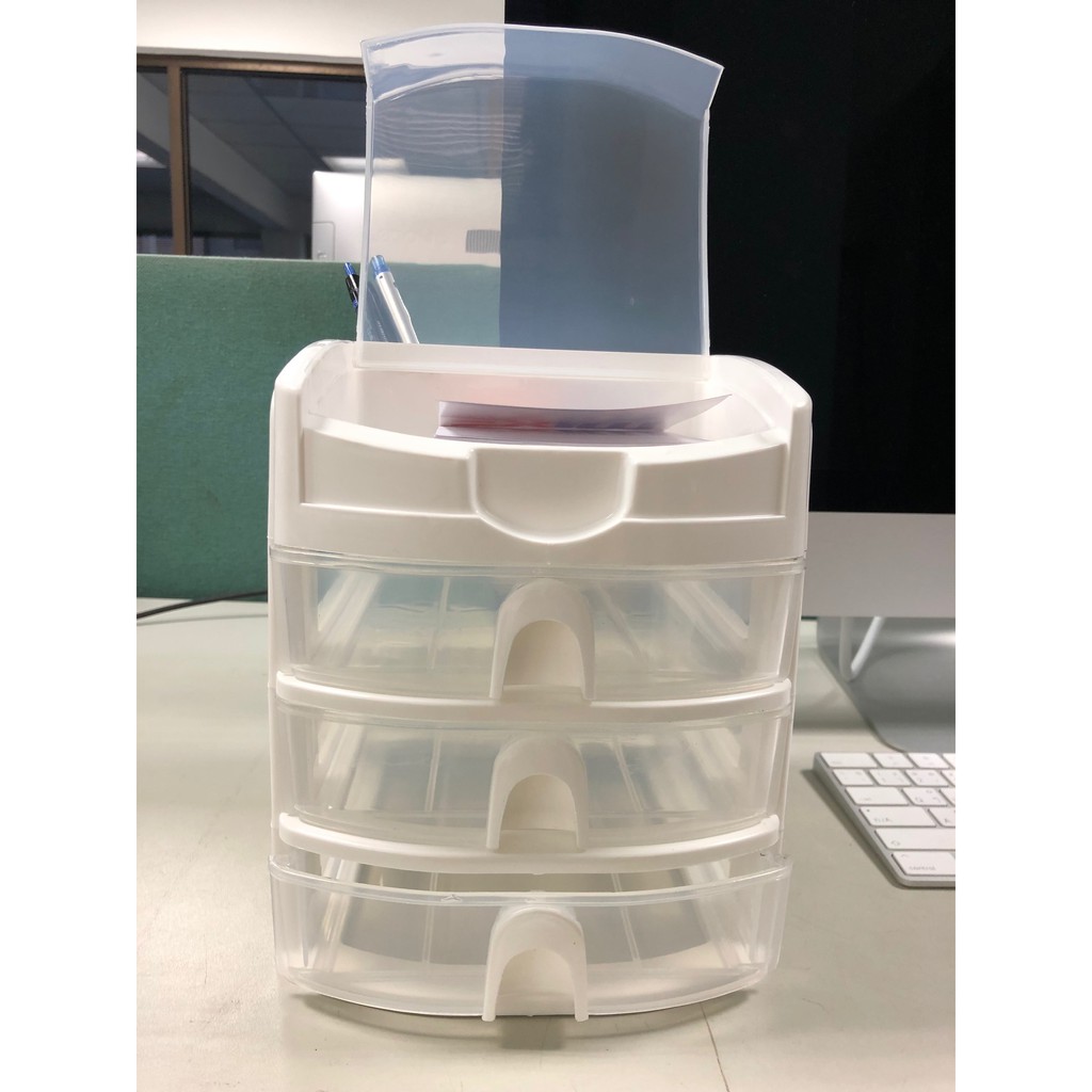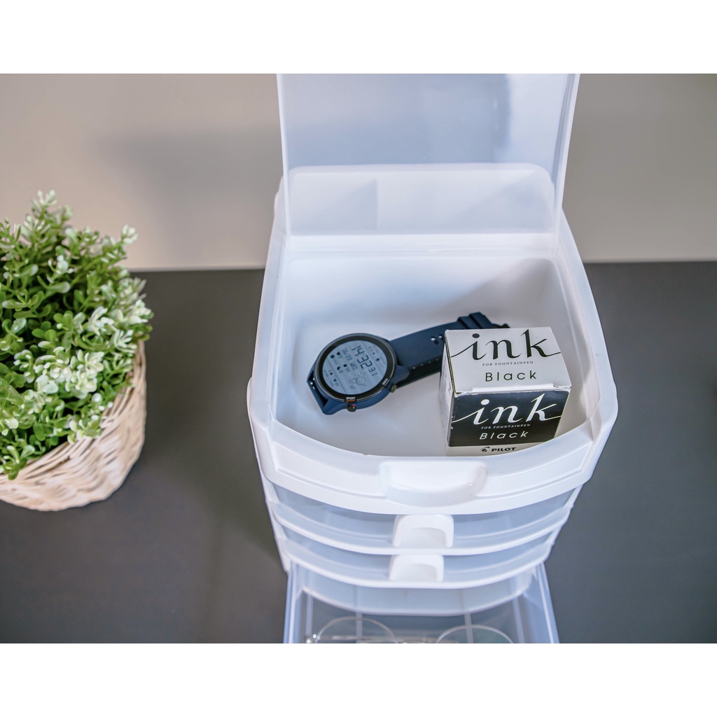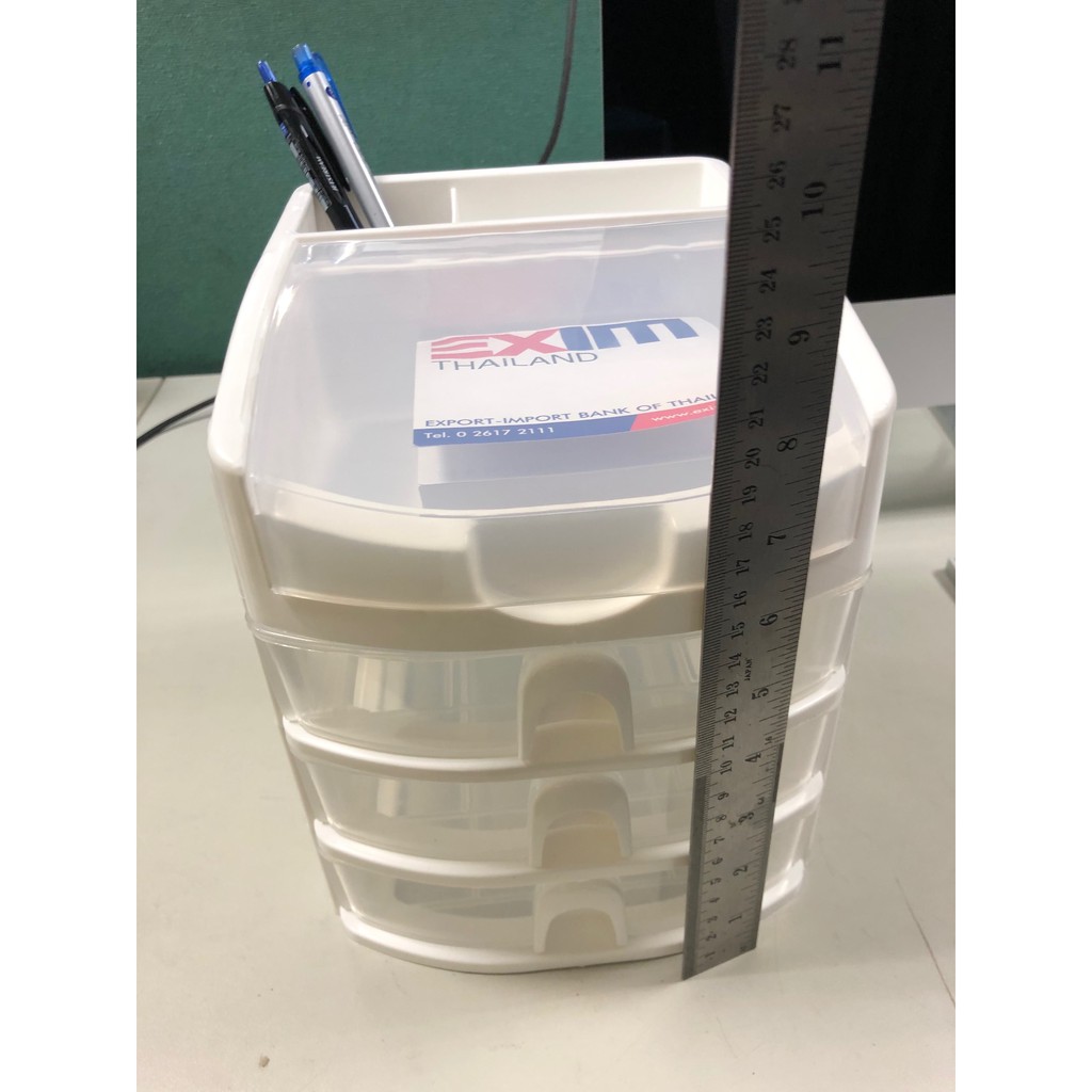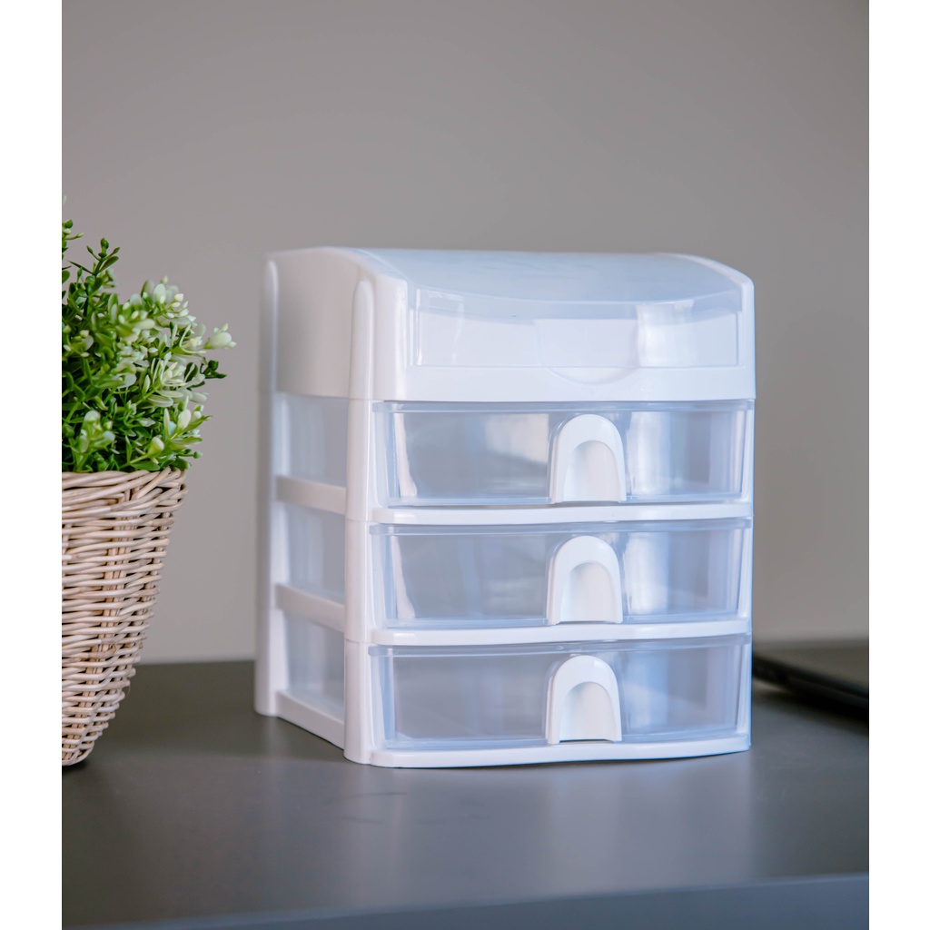 ตู้ลิ้นชักเล็ก 3 ชั้น พร้อมถาดบนสำหรับใส่ของ สีขาวใส Stationery Organizer with upper tray white color CB-123
