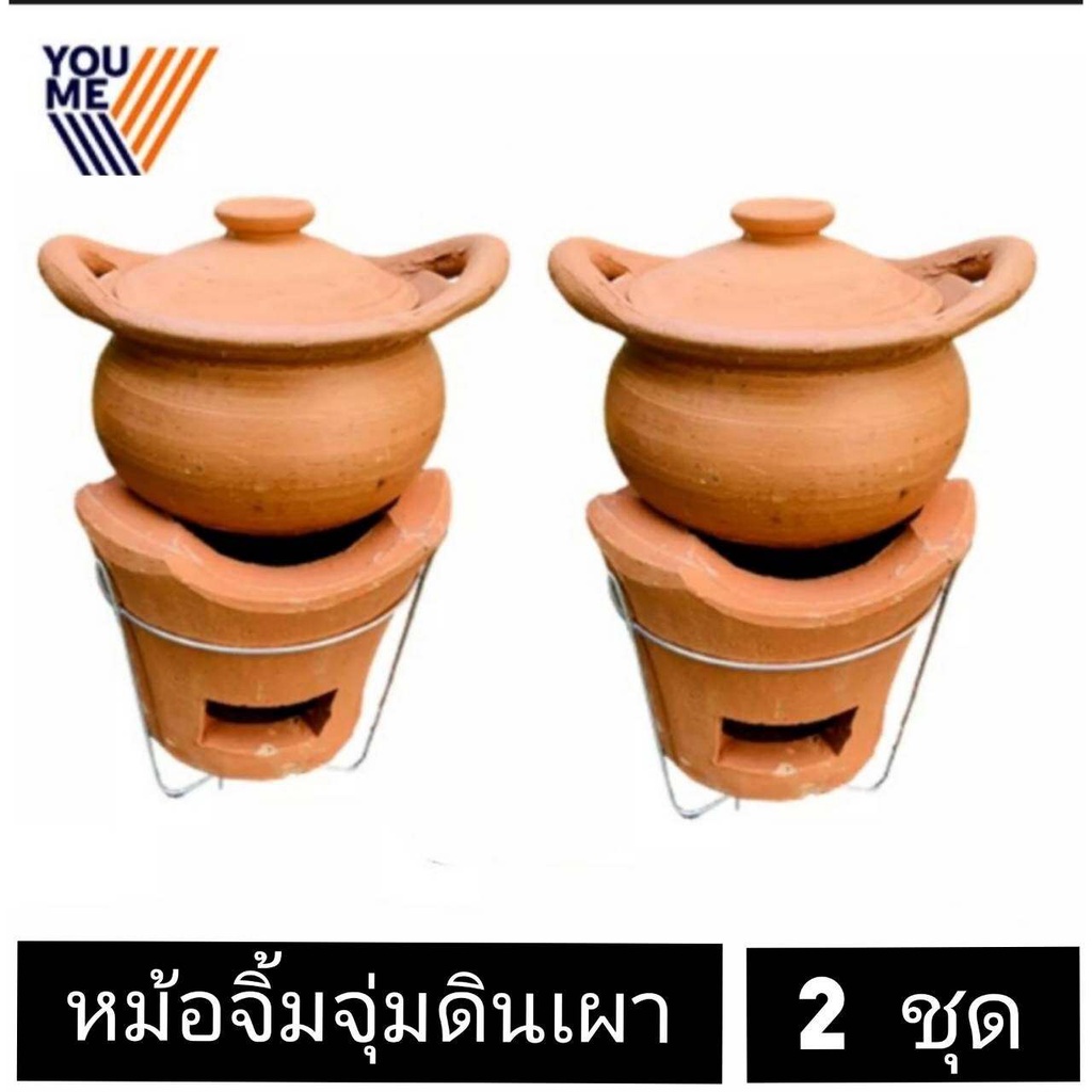 หม้อจิ้มจุ่มดินเผา ชุดหม้อจิ้มจุ่มครบชุด ราคาถูก แบบเตาหนา