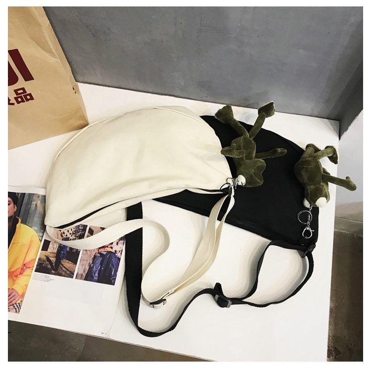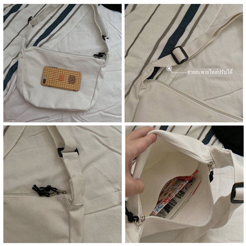 Fashion ลูกค้าใหม่ 1 บาท กระเป๋าสะพายข้าง ผ้าแคนวาส กระเป๋าคาดอก มีซิป สไตล์เท่ๆแบบเกาหลี ไม่มีพวงกุญแจ B-610