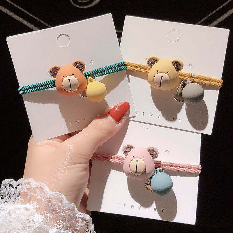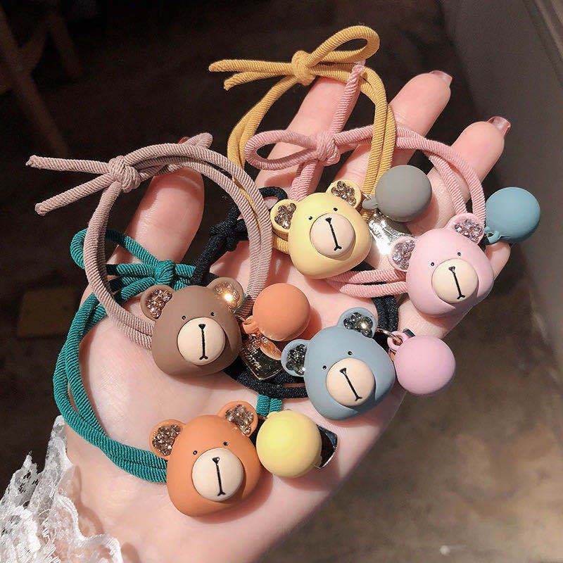Fashion ยางรัดผมเส้นคู่ น้องหมี หูเพชร น่ารักสุดๆไปเลย พร้อมส่งจากไทย Q-64