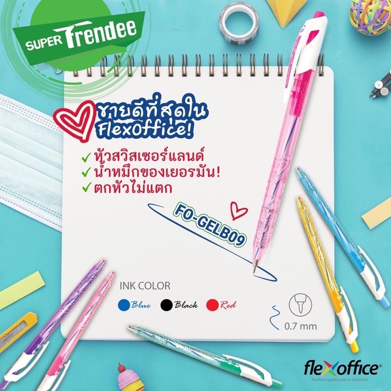 (3ด้าม) Flexoffice ปากกาลูกลื่น 0.5 - 0.7มม