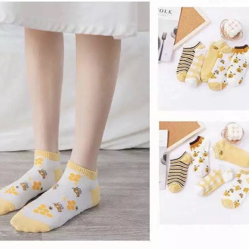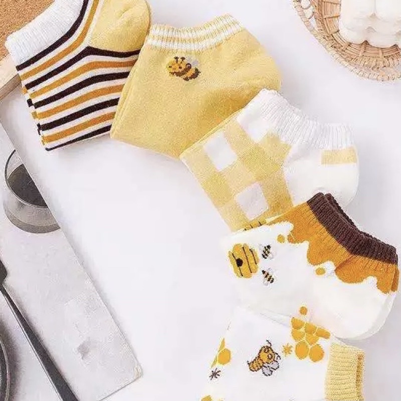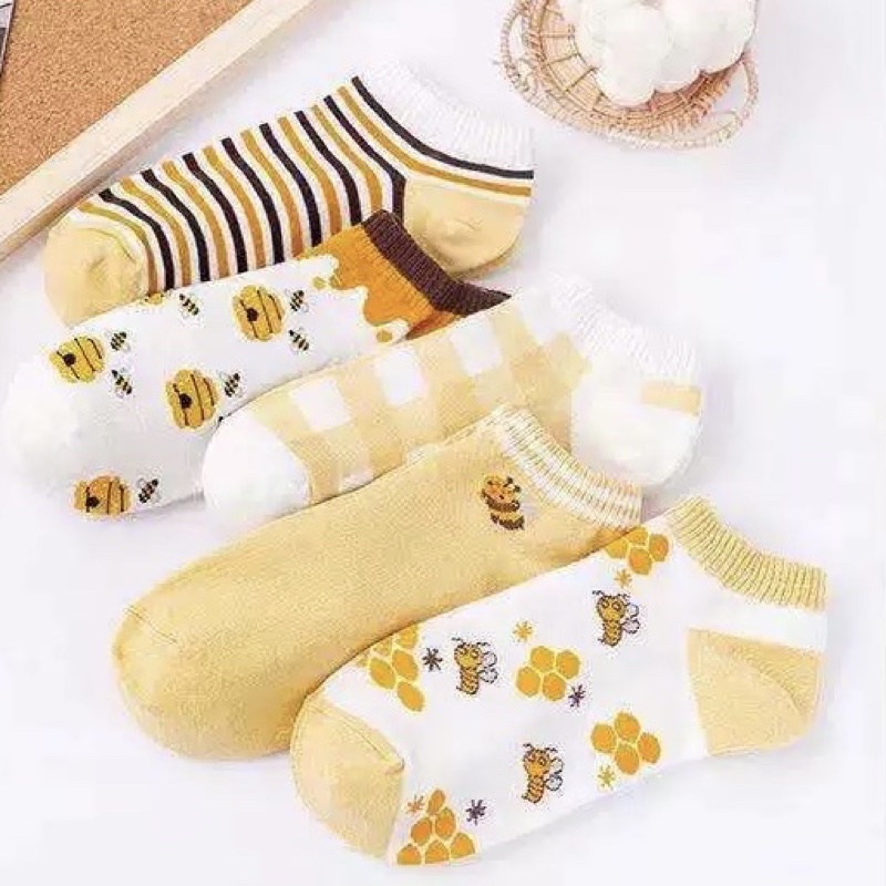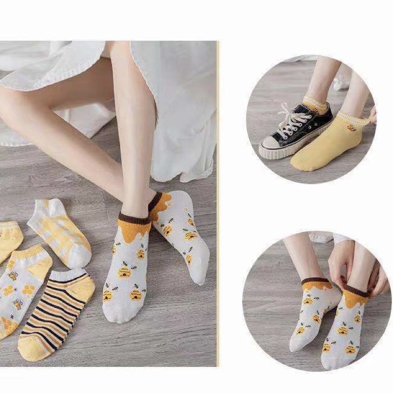 ถุงเท้าข้อสั้น ผึ้ง เหลือง 5คู่ ถุงเท้าแฟชั่น สไตล์เกาหลี ใส่ได้ทั้ง ช/ญ