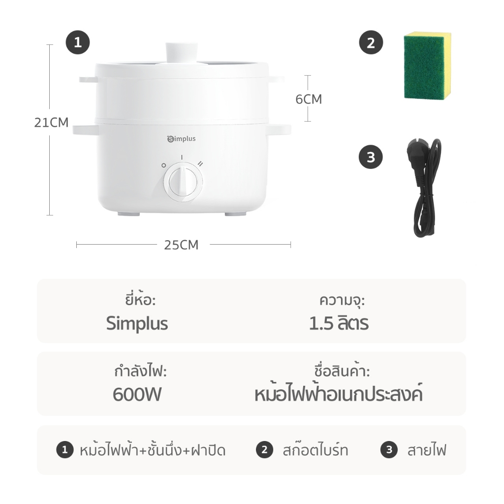Prenta x Simplus หม้อไฟฟ้าอเนกประสงค์ 1.5 ลิตร อาหารไม่ติดผิวหม้อ ปรั บความร้อนได้ 2 ระดับ Top sale Multi Cookers DZGH003