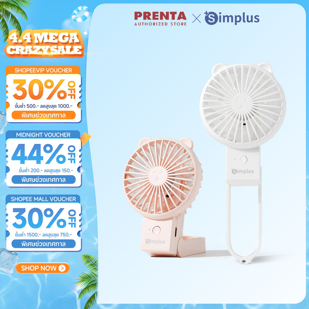 Prenta x Simplus พัดลมมือถือมินิน่ารัก แบบพกพา พับได้ ความเร็ว 3 ระดับ ชาร์จ แบตเตอรี่ใช้งานได้ 6 ชั่วโมง Lite3 DFSH015