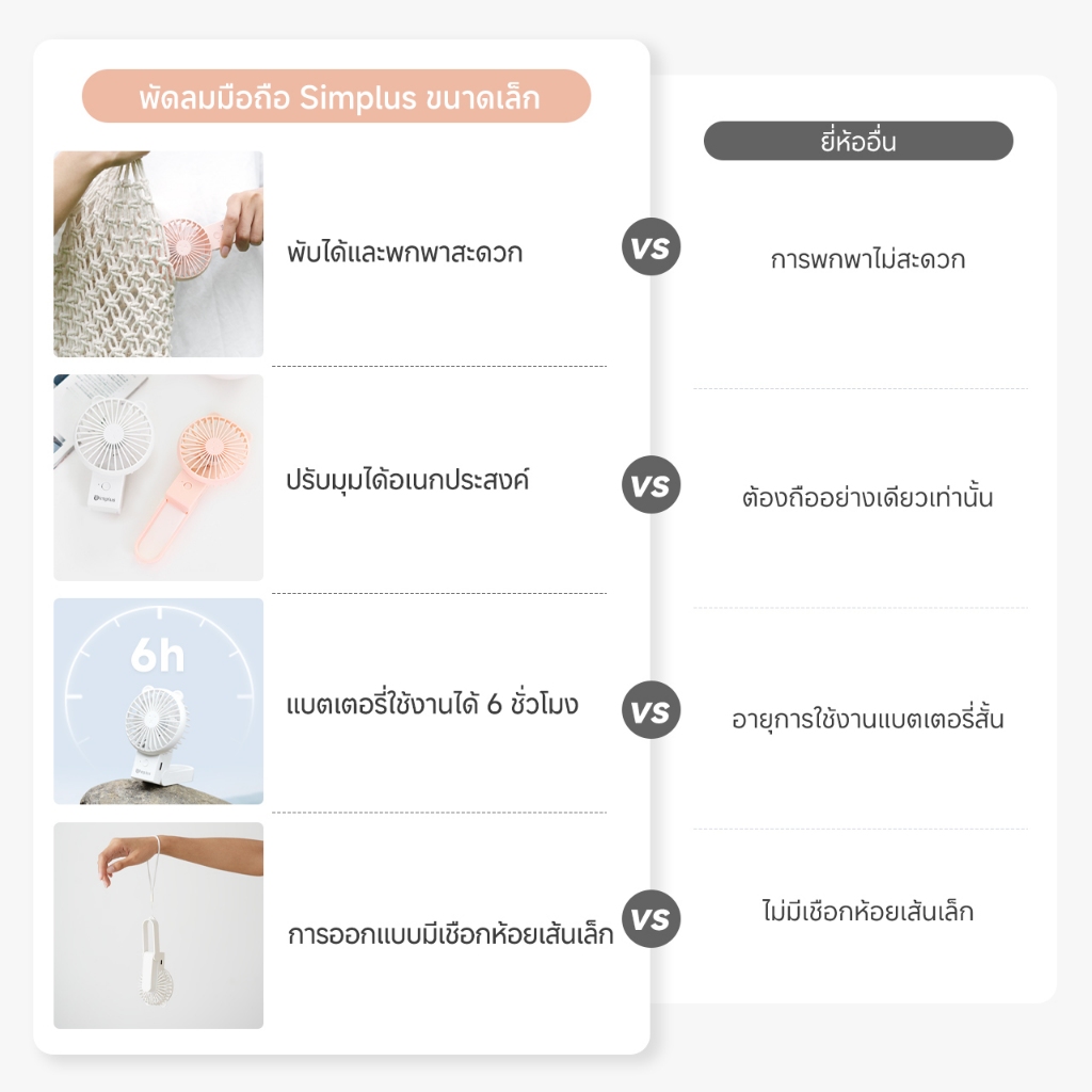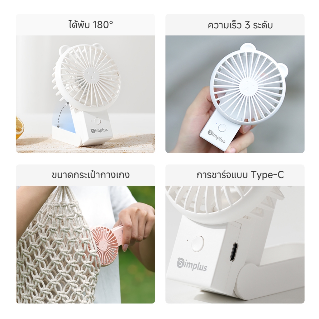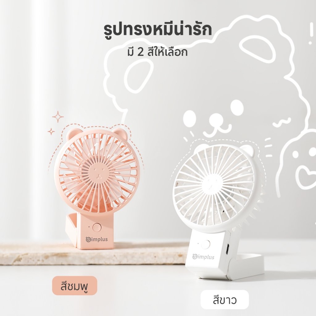 Prenta x Simplus พัดลมมือถือมิ นิน่ารัก แบบพกพา พับได้ ความเร็ว 3 ระดับ ชาร์จ แบตเตอรี่ใช้งานได้ 6 ชั่วโมง Lite3 DFSH015