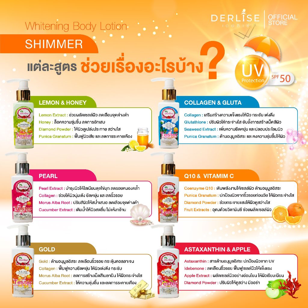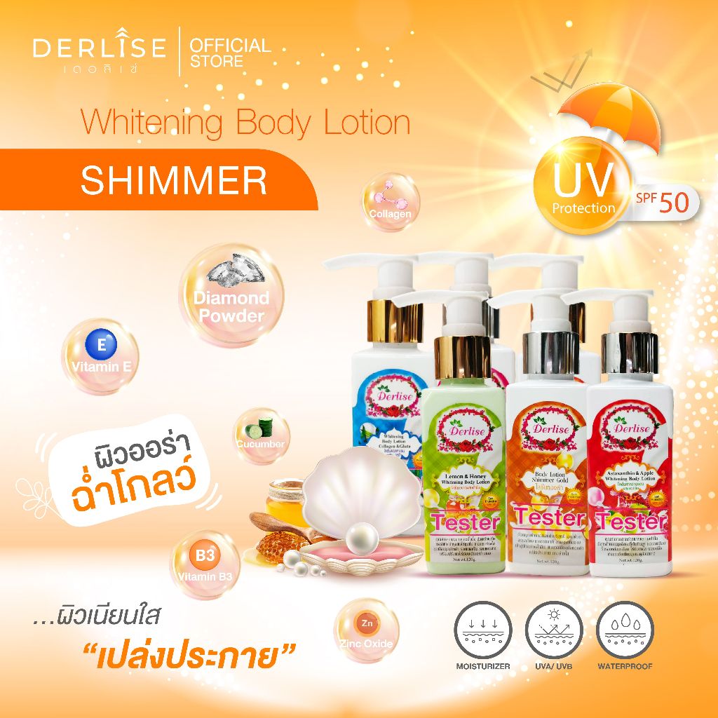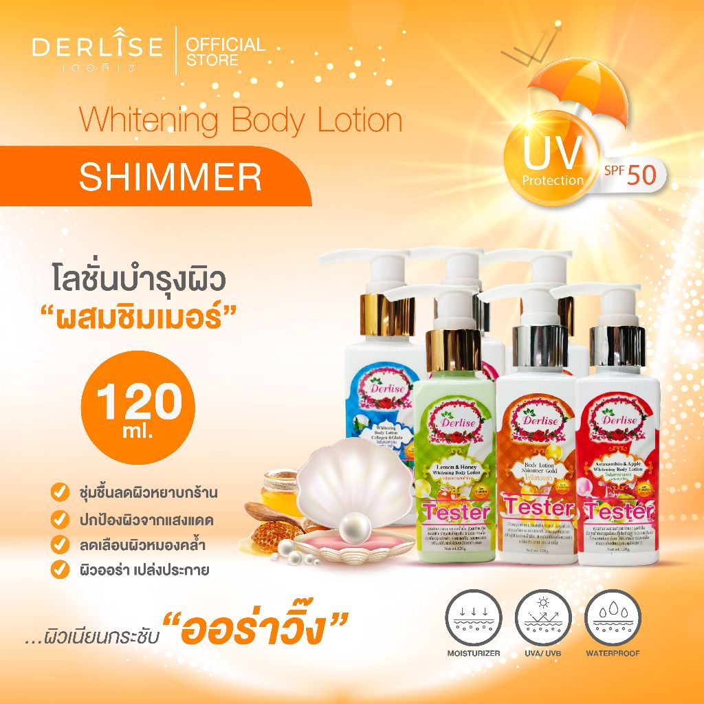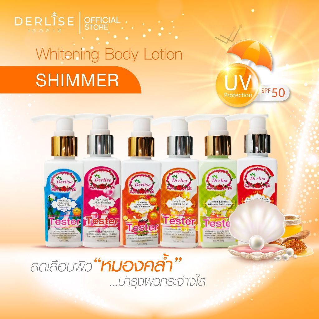 Derlise โลชั่นบำรุงผิวขาวใสผสมชิมเมอร์ ขนาดทดลอง 120 กรัม ขาวเนียนนุ่ม ลดจุดด่างดำ