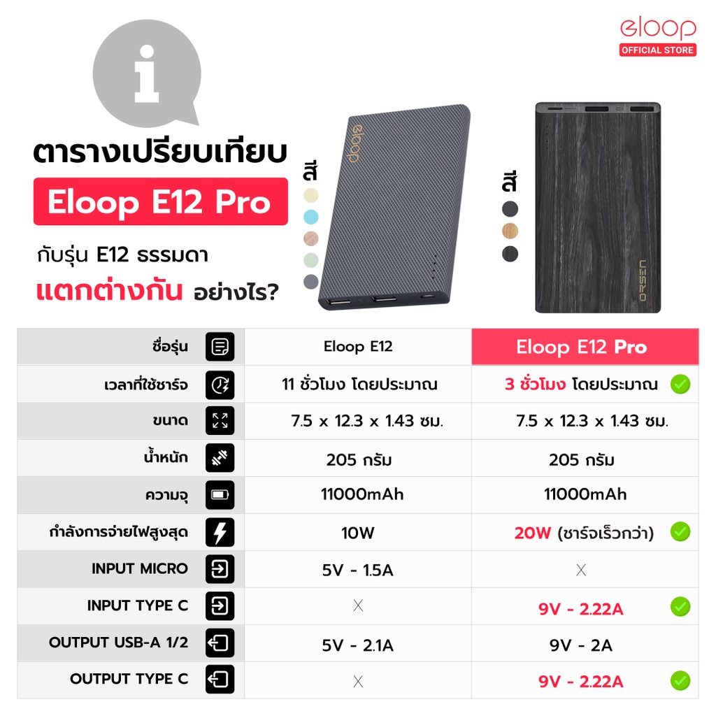[แพ็คส่ง 1 วัน] Orsen by Eloop E12 / E12 Pro แบตสำรอง 11000mAh รองรับ PD สูงสุด 20W Powerbank พาวเวอร์แบงค์