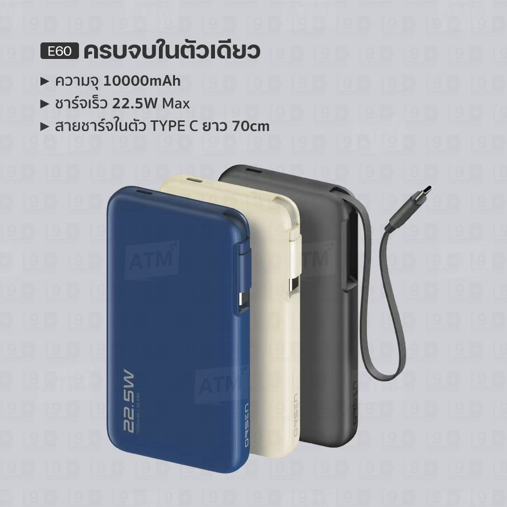 [539บ. ส่งด่วน] Orsen by Eloop E60 E66 แบตสำรอง 10000mAh/20000mAh ชาร์จเร็ว 22.5W/45W มีสายในตัว Type C PD PPS