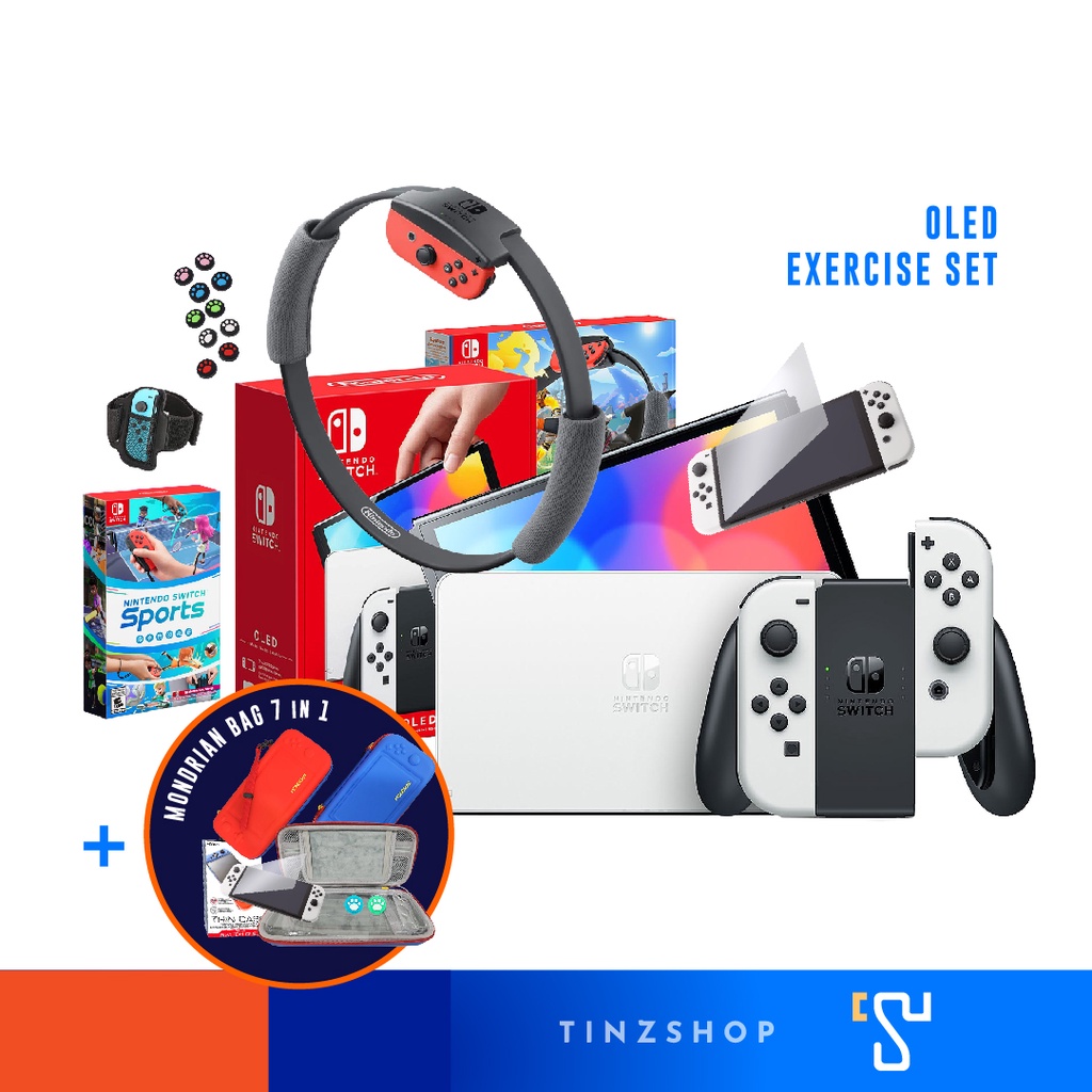 [ชุดพร้อมเล่น] Nintendo Switch OLED Exercise Set เครื่องเกม + RingFit + Sports +Leg strap + อุปกรณ์ 7 in1 case + กระเป๋า