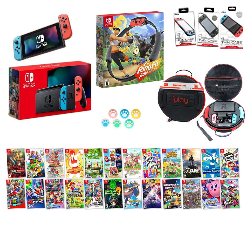 Nintendo Switch Maxsoft Play@Home #3 เครื่องเกม นินเทนโดสวิทช์ ชุดเพลย์แอทโฮม3 (NS+Ringfit+game)