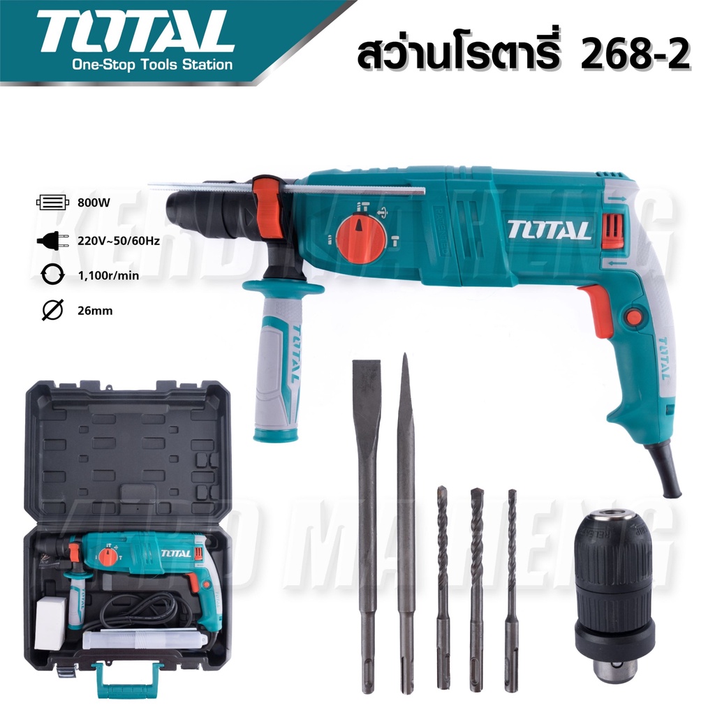 TOTAL สว่านโรตารี่ เจาะคอนกรีต 3 ระบบ(เปลี่ยนหัวได้)ขนาด 26 มิล 800 วัตต์ รุ่น TH308268-2 รุ่นเปลี่ยนหัวได้ สุดคุ้ม
