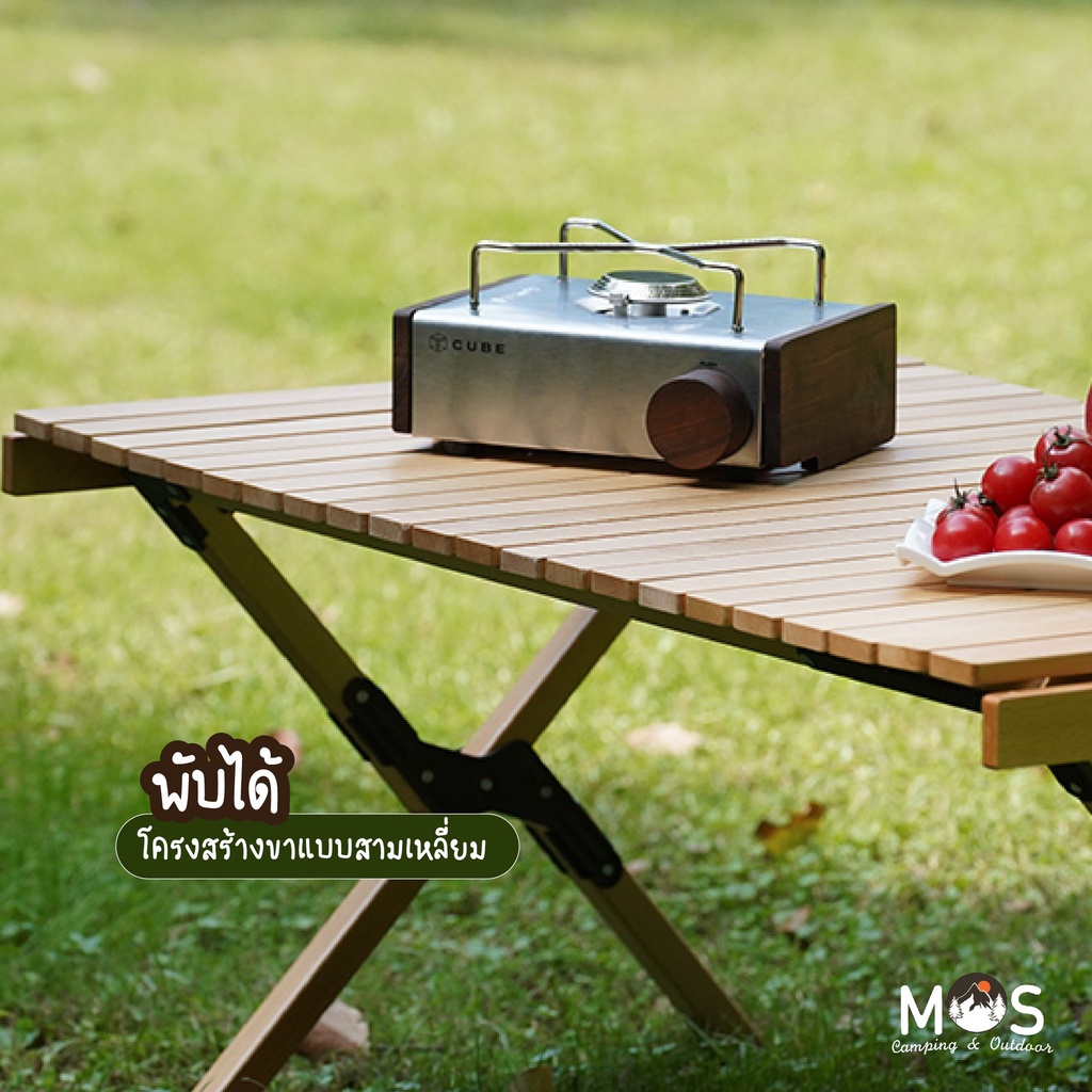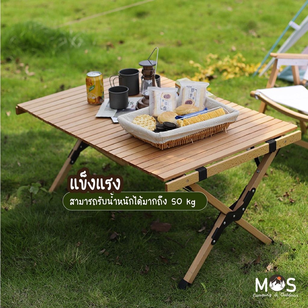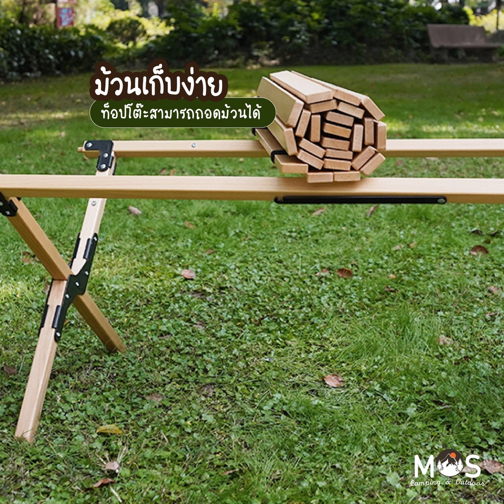 โต๊ะแคมป์ปิ้ง โต๊ะไม้แคมป์ปิ้ง พับได้ แบบไม้ ยาว 90 ซม โต๊ะสนาม ม้วนเก็บได้ Camping wood egg roll table [MOS_024]
