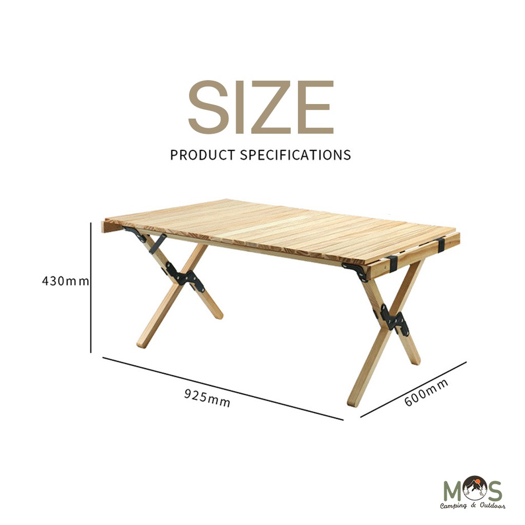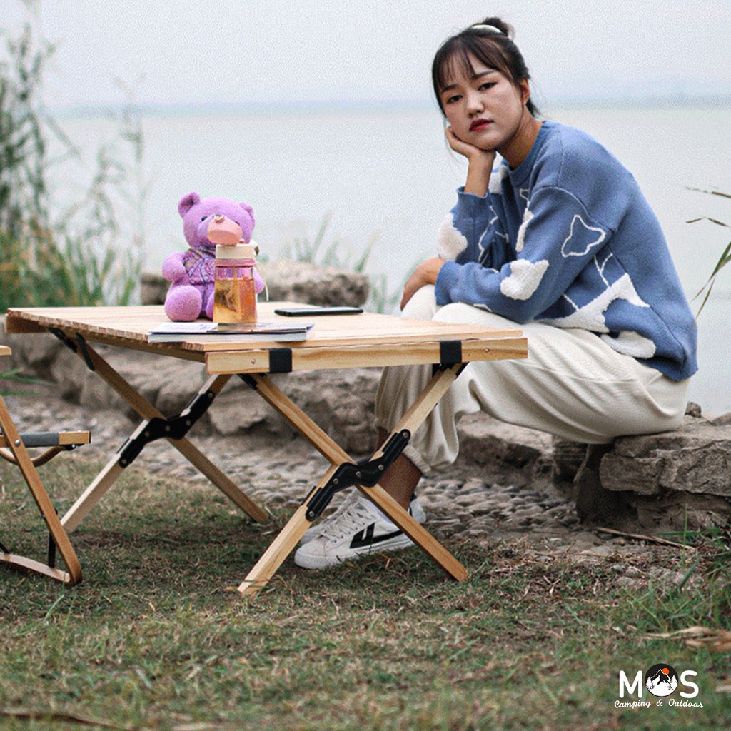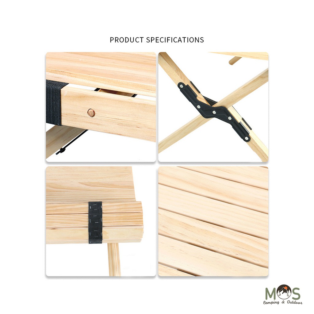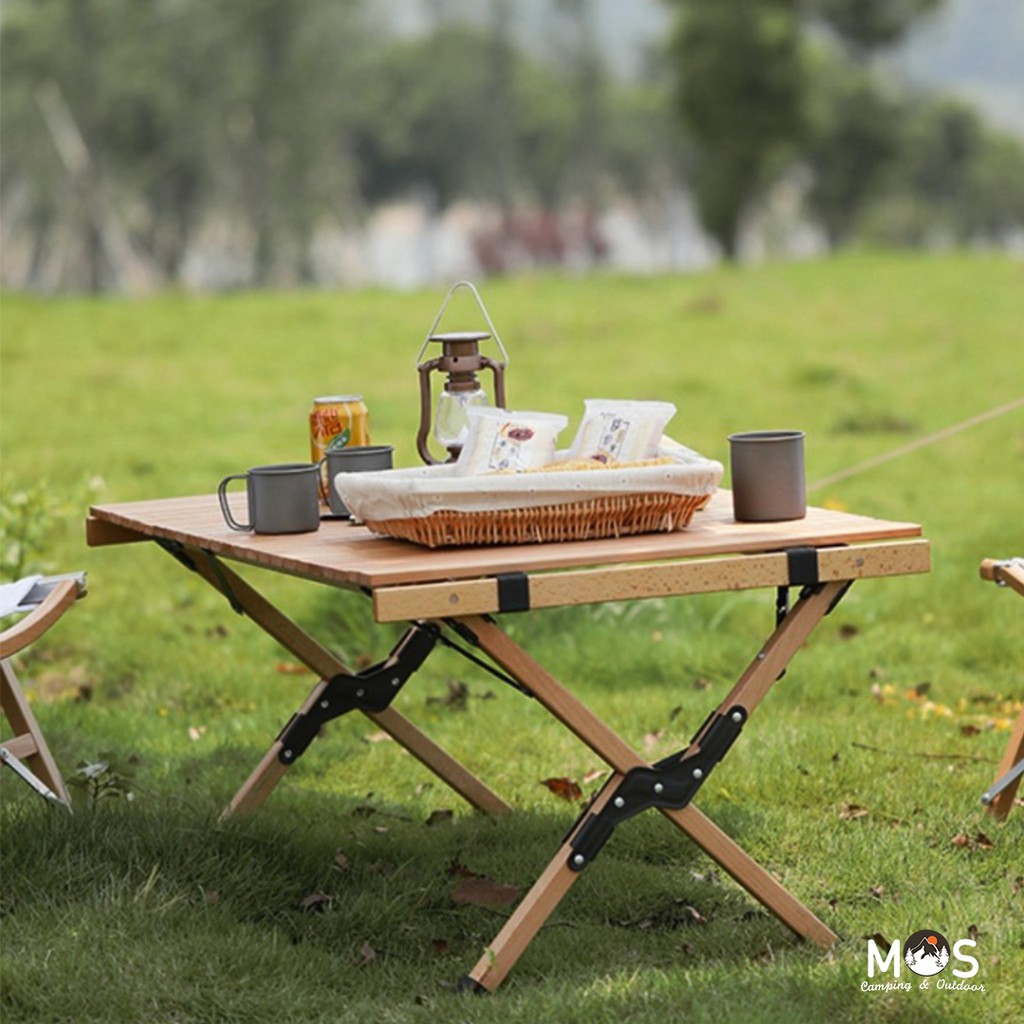 โต๊ะแคมป์ปิ้ง โต๊ะไม้แคมป์ปิ้ง พับได้ แบบไม้ ยาว 90 ซม โต๊ะสนาม ม้วนเก็บได้ Camping wood egg roll table [MOS_024]