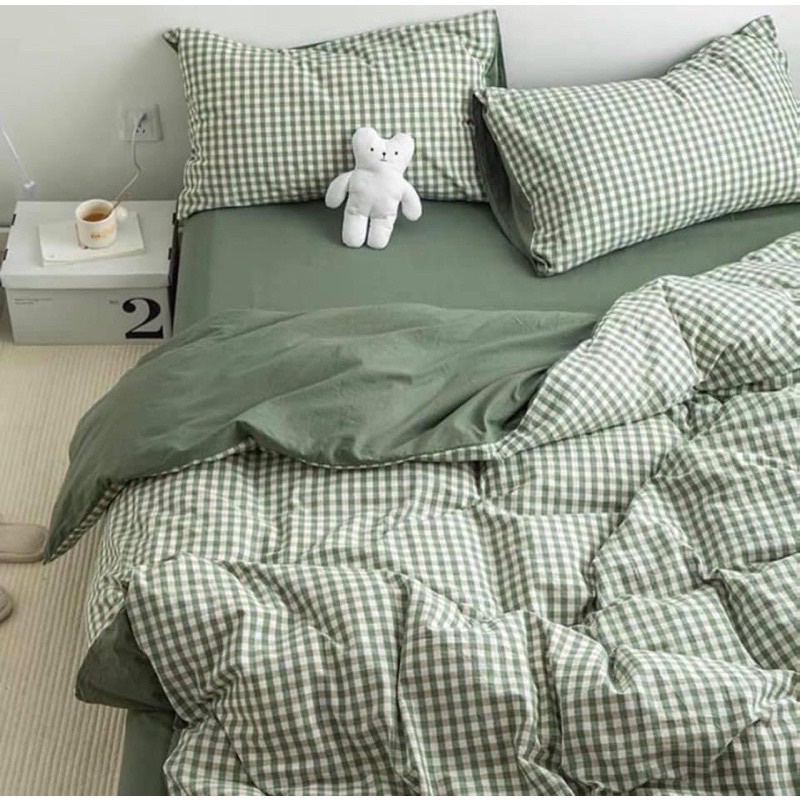 ผ้าปูที่นอน พร้อมผ้านวม ชุดเครื่องนอน ครบเซ็ต 6 ชิ้น โทนเขียว💚