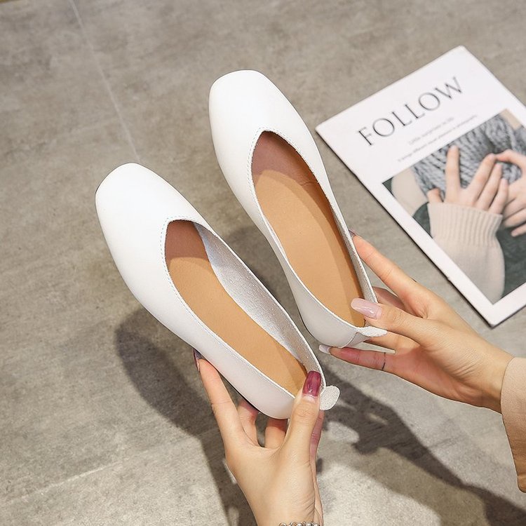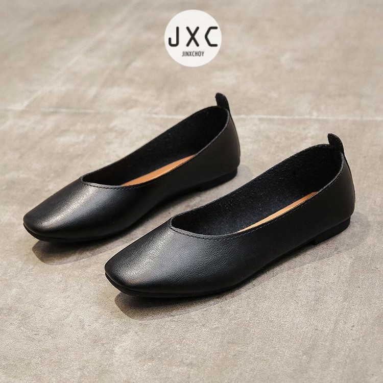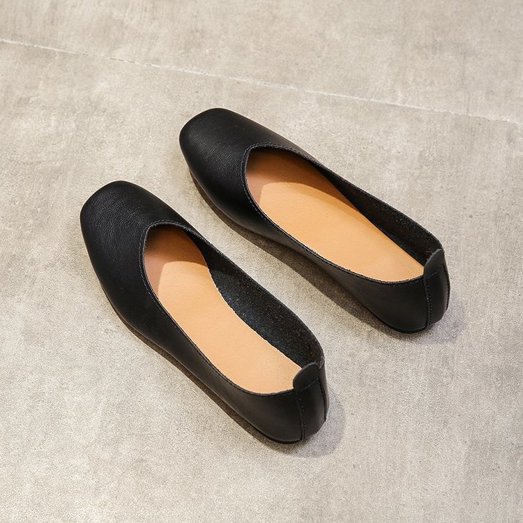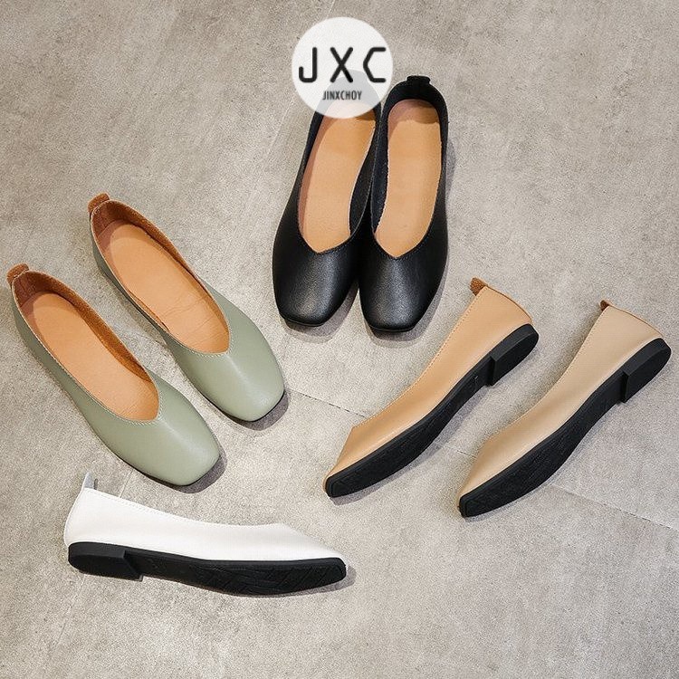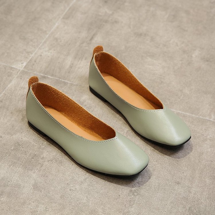 รองเท้าหุ้มส้น หนัง PU หัวเหลี่ยม ส้นแบน สำหรับผู้หญิง รองเท้าส้นเตี้ยสบายนุ่มสบายสำหรับการเดินทางในชีวิตประจำวัน