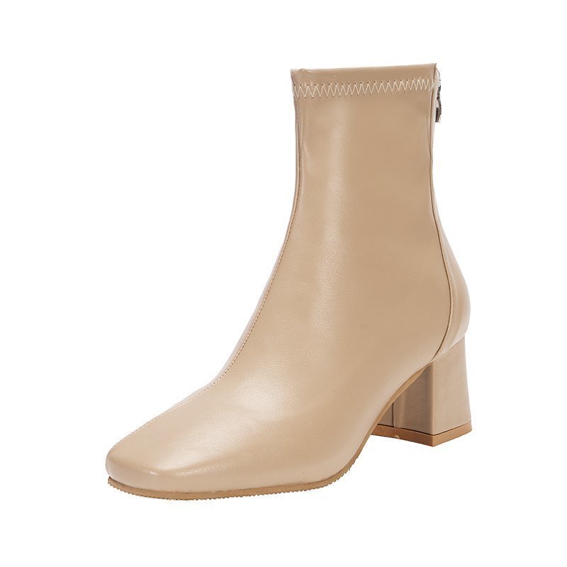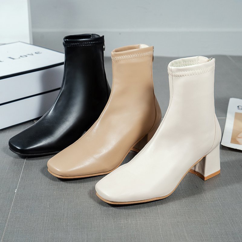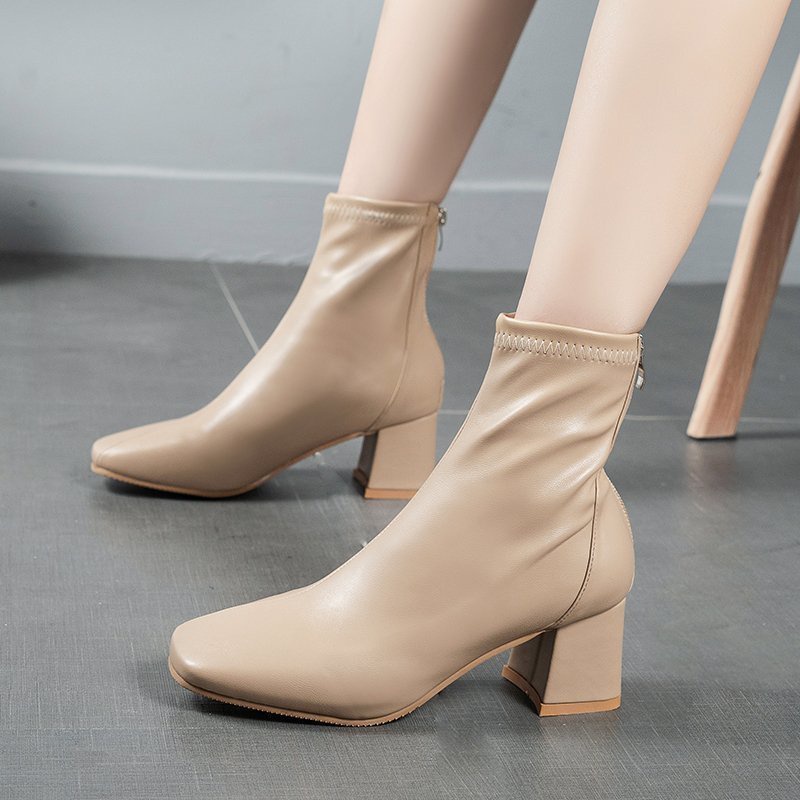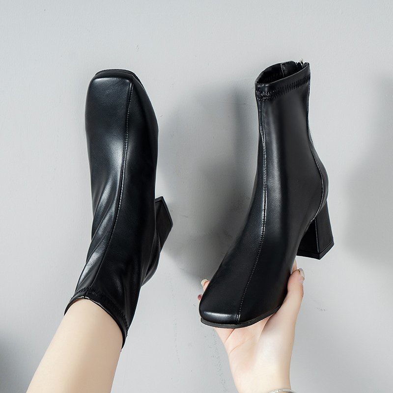 ใหม่ รองเท้าบูทส้นสูง หนัง PU หนา 6 ซม. มีซิปด้านหลัง ใส่สบาย แฟชั่นสไตล์เกาหลี สําหรับผู้หญิง Y2K ขายส่งจากโรงงาน