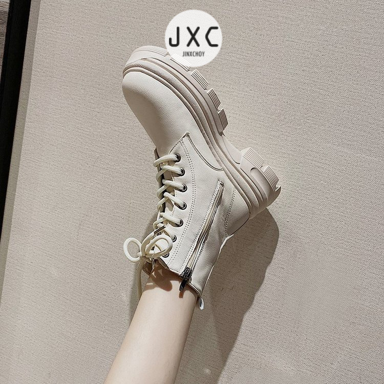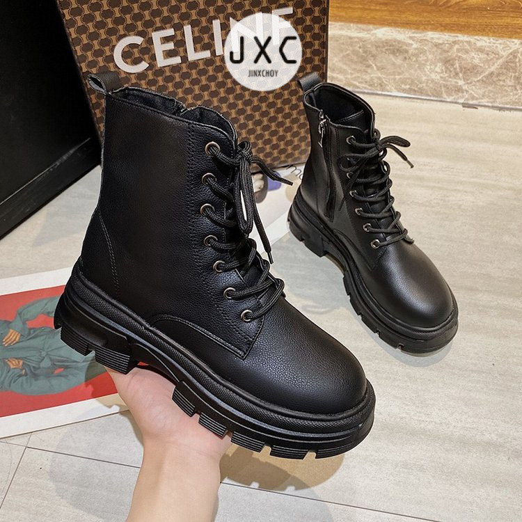 รองเท้าบูทมาร์ติน พื้นหนา แต่งซิปด้านข้าง เข้ากับทุกการแต่งกาย สําหรับนักเรียน 2024