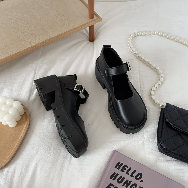 รองเท้าแมรี่แจน หัวกลม แบบมีส้น สำหรับผู้หญิง การเดินทางในชีวิตประจำวันการเดินทางของนักเรียนช้อปปิ้งรองเท้าหนังขนาดเล็ก