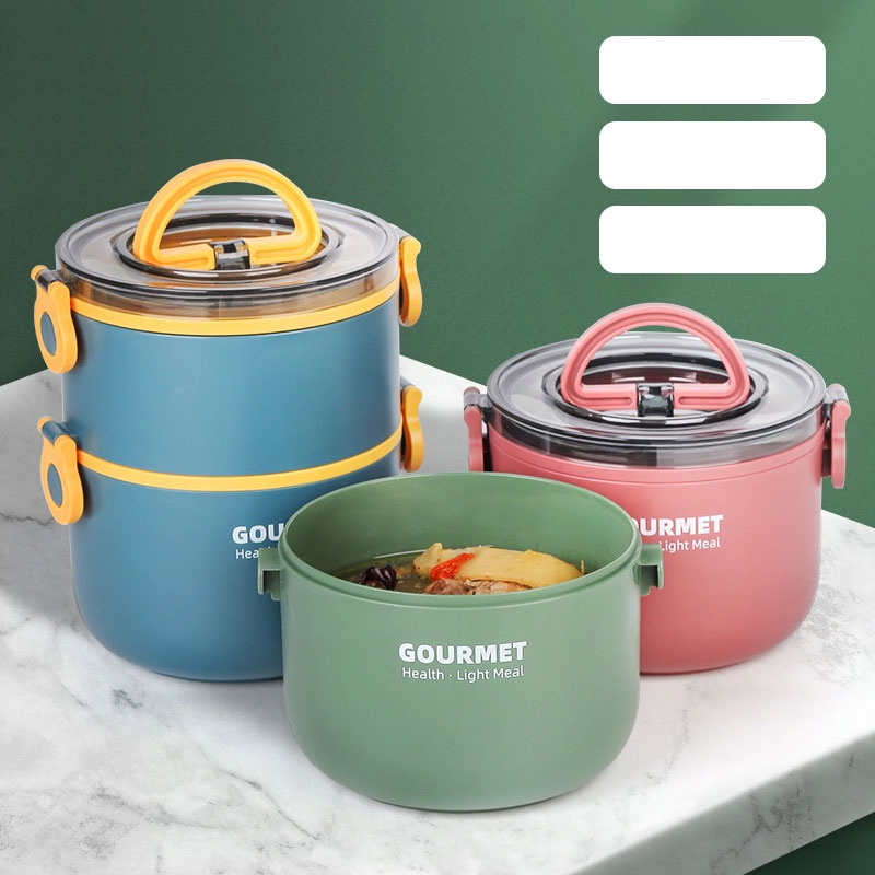 ปิ่นโตเก็บความร้อน เก็บอุณหภูมิ 1-3 ชั้น ทรงกลม ก้นลึก สไตล์วินเทจ ซื้อ 1 ได้ถึง 6