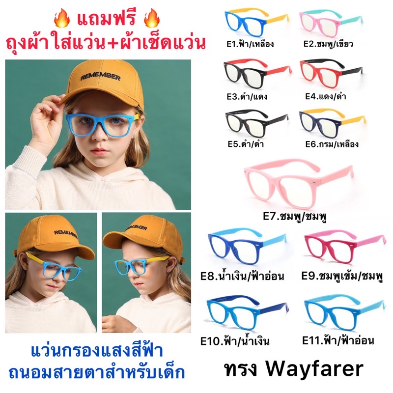 แว่นเด็ก แว่นตาเด็ก แว่นตากรองแสงสีฟ้าถนอมสายตาสำหรับเด็ก รุ่นF886 มี11สี แถมฟรี(ถุงผ้า+ผ้าเช็ดแว่น)