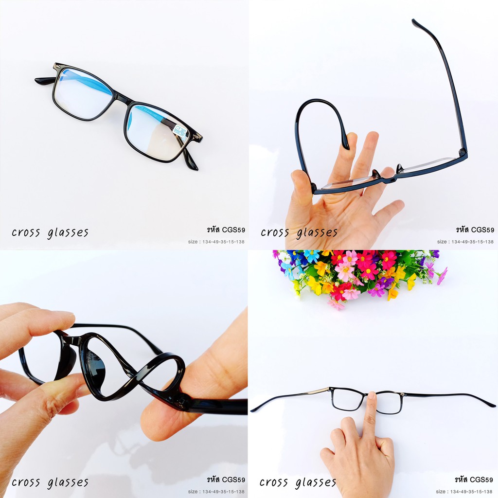 แว่นสาย ตาสั้นกรองแสง -1.0ถึง-6.0 และสายตาปกติ ทรงเหลี่ยม กรอบแว่นดัดงอได้ รหัส CGS59 พร้อมกล่อง+ผ้าเช็ดเลนส์