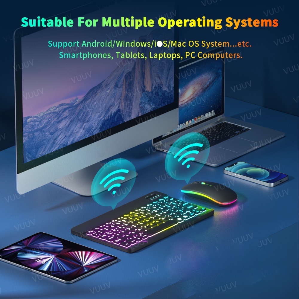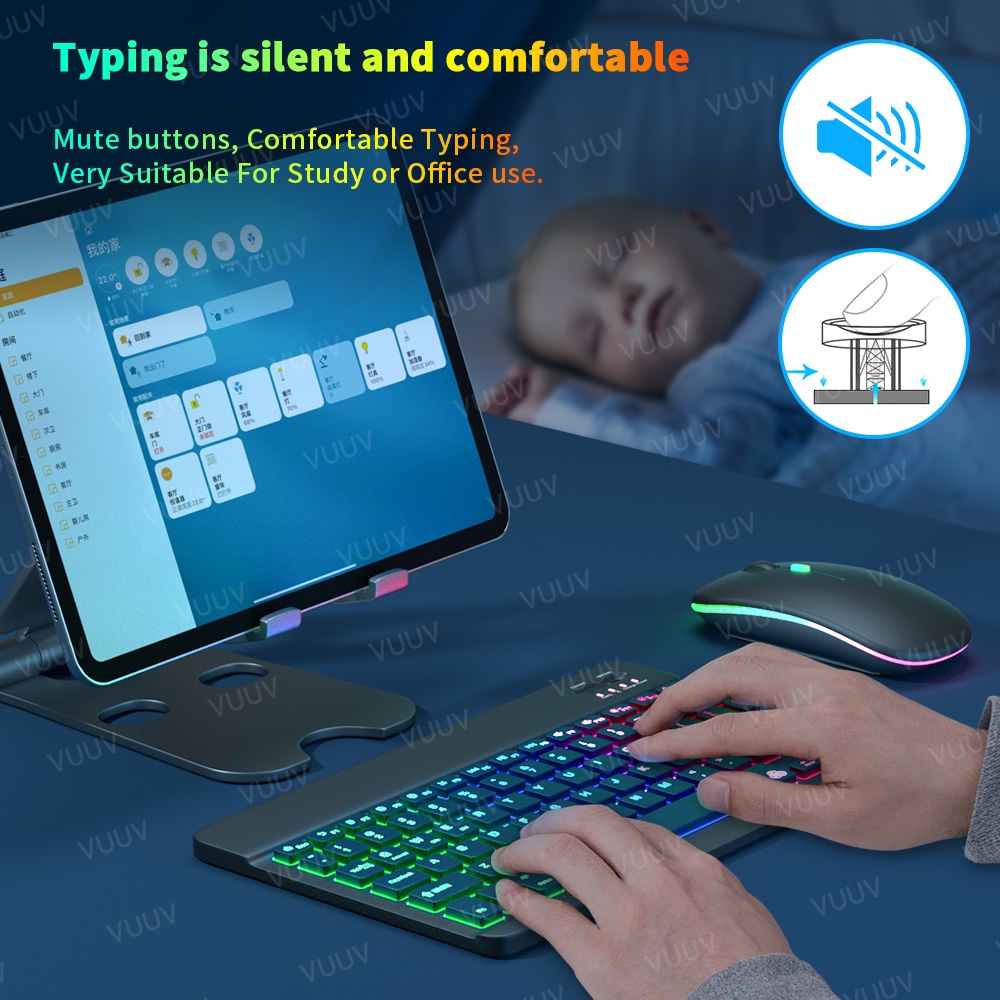 GOOJODOQ 🇹🇭【คีย์บอร์ดไทย】ใหม่แบ็คไลท์ไล่โทนสี Bluetooth Keyboard,เมาส์ไร้สาย,คีย์บอร์ด ipad,เหมาะสำหรับแท็บเล็ต