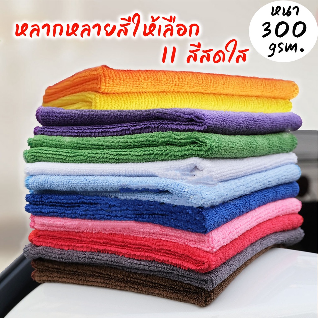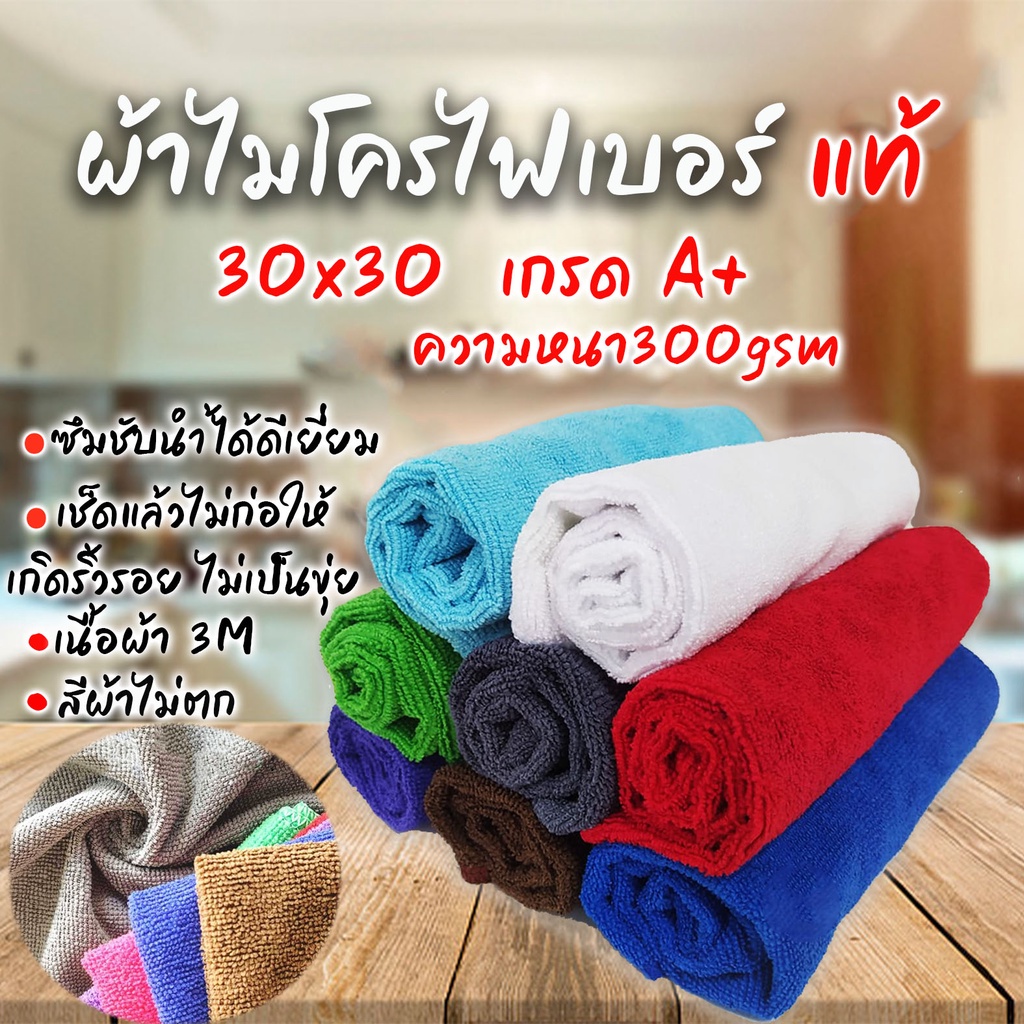 ผ้าไมโครไฟเบอร์A+ แท้!!! ผ้าเช็ดรถหนา 300gsm 30×30cm หลากหลายสีให้เลือก หนาซับน้ำอย่างดี ทำความสะอาด ล้างรถ