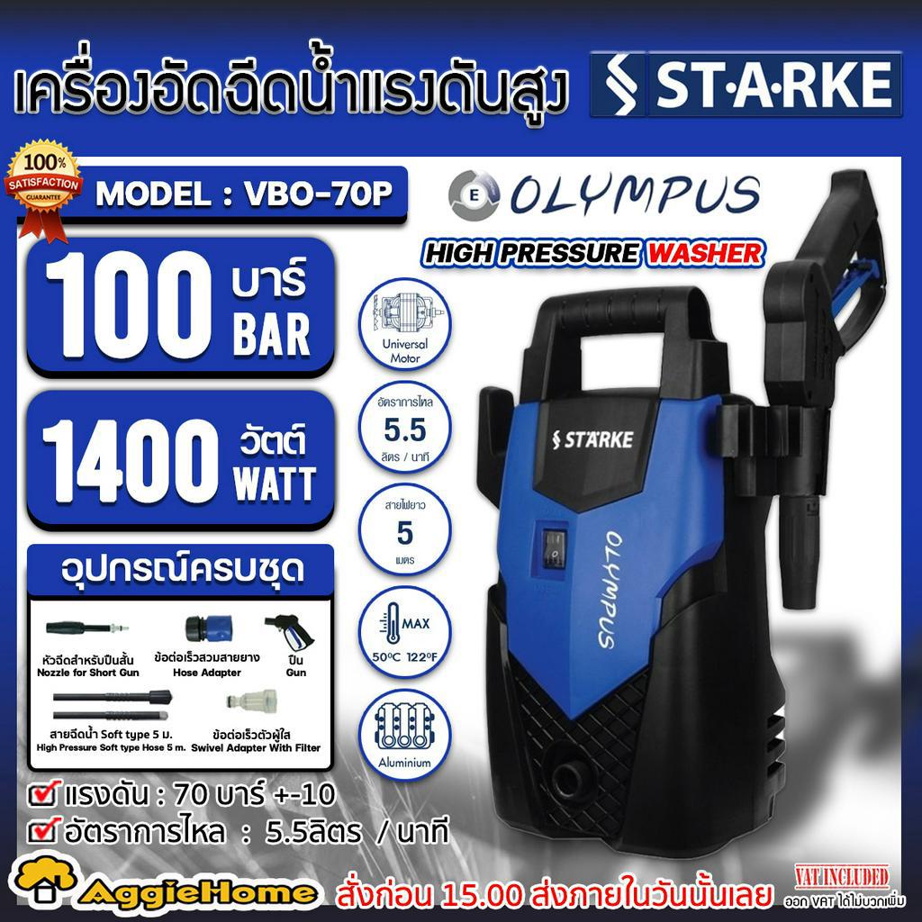STARKE เครื่องอัดฉีด รุ่น VBO-70P 1400วัตต์ 100บาร์ (OLYMPUS) 220V เครื่องฉีดน้ำ อัดฉีด แรงดันสูง ล้างรถ