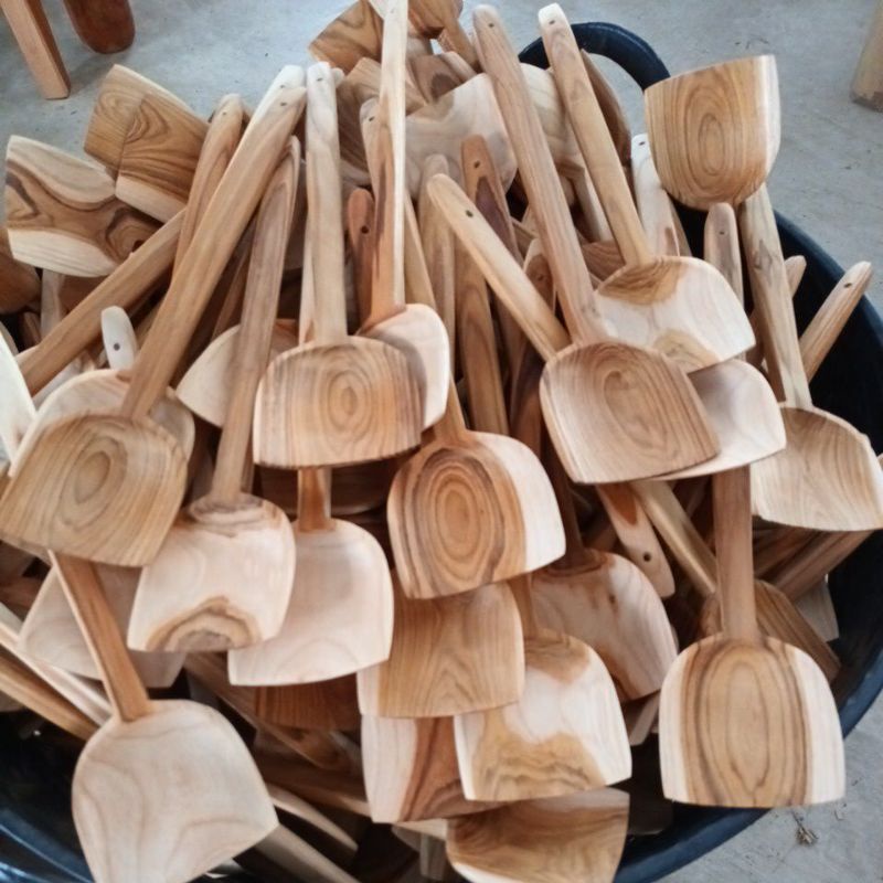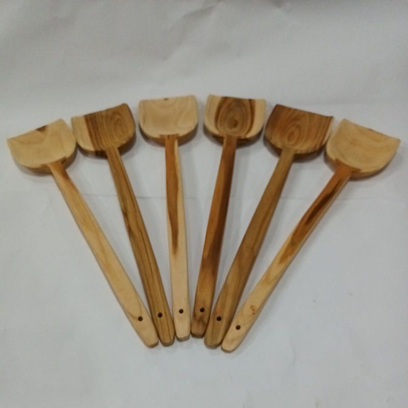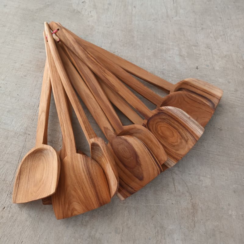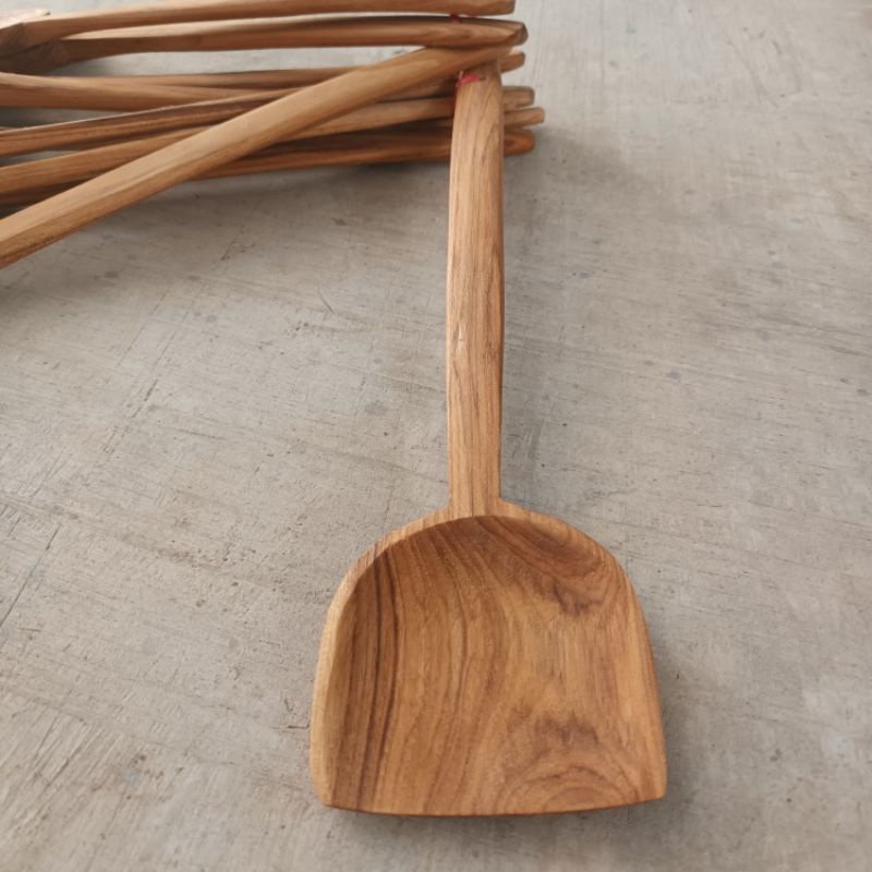 W0014 ตะหลิวไม้สักแท้ ไม่เคลือบสี อุปกรณ์ประกอบอาหาร งานไม้สัก