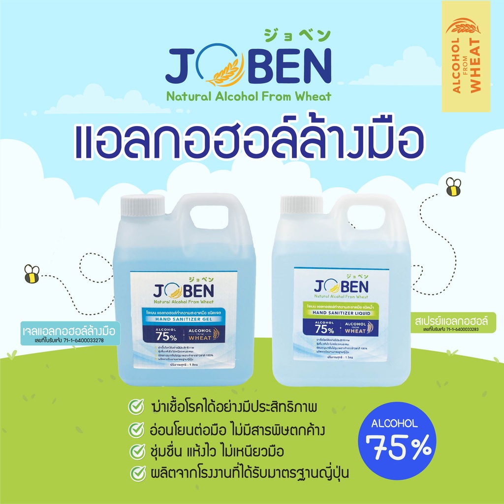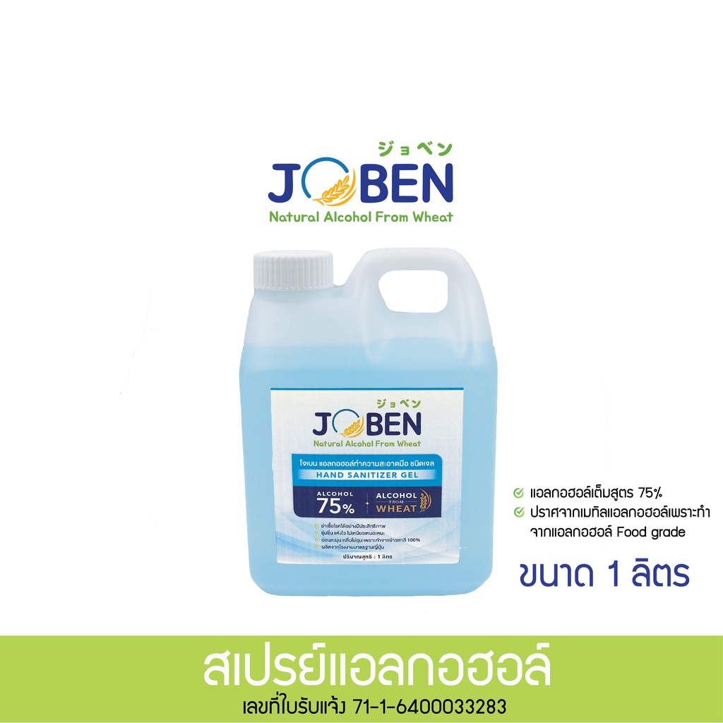 1แถม1 🔥สเปรย์แอลกอฮอล์ เจลแอลกอฮอล์ 75% Food Grade 1 ลิตร โจเบน