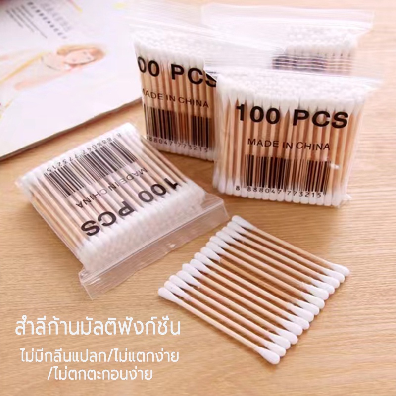 สำลีก้าน 100ชิ้น วัสดุ ก้านไม้ สำลี ใช้ปั่นหู ใช้สำหรับบาดแผล สะอาดปลอดภัย