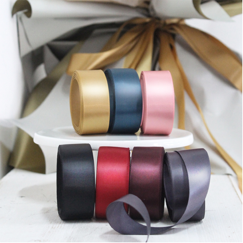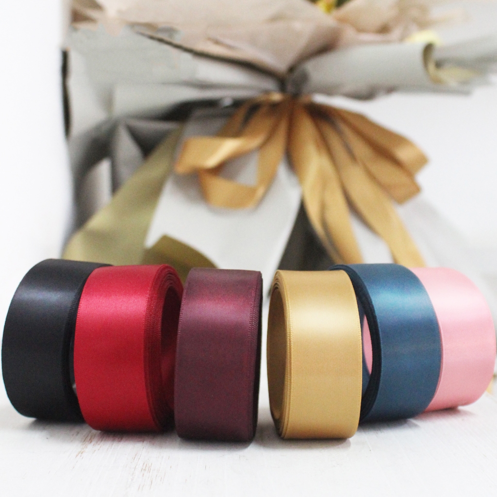 ริบบิ้นผ้าซาตินหน้ากว้าง 2.5 ซม | ริบบิ้นด้านเดียวสีทึบสําหรับห่อของขวัญวันเกิดกล่องเค้กแต่งงานงานฝีมือ ทําเอง ดอกไม้ตกแต่งบรรจุภัณฑ์ดอกไม้ทํามือ
