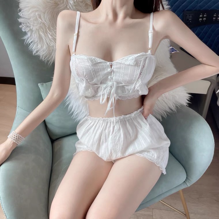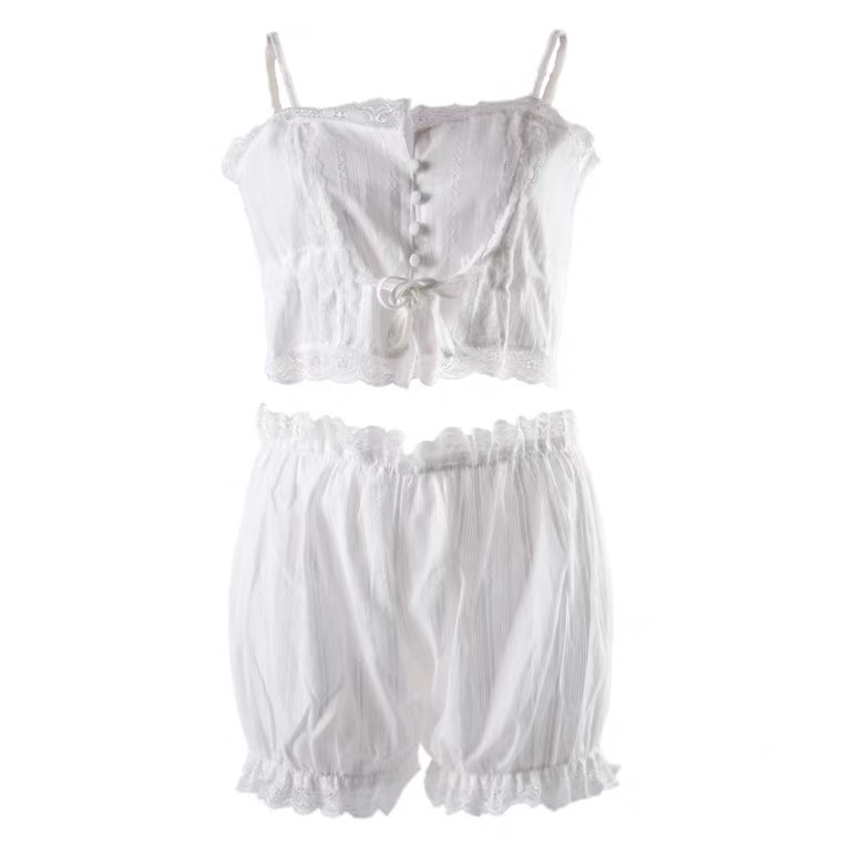 ชุดนอนเสื้อกางเกง แบบผ้าฝ้าย ขาสั้น สายเดี่ยวปรับได้ P-021 ขายส่ง