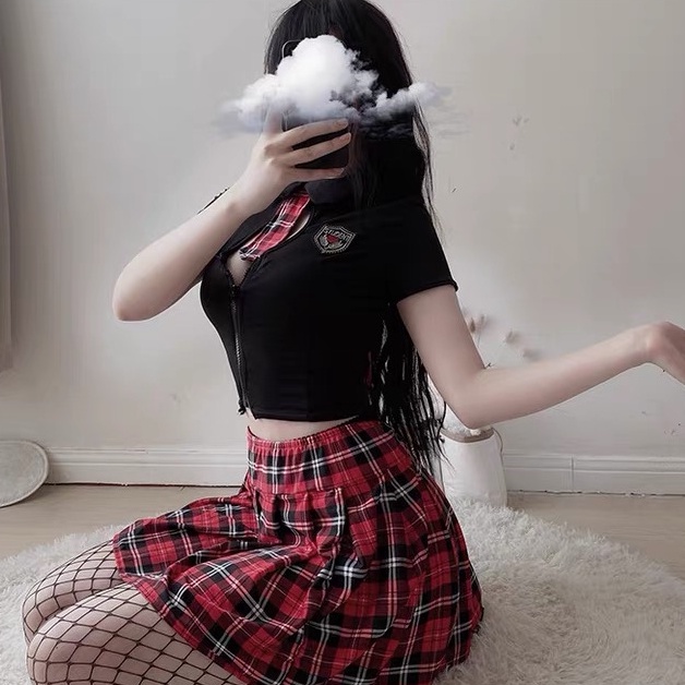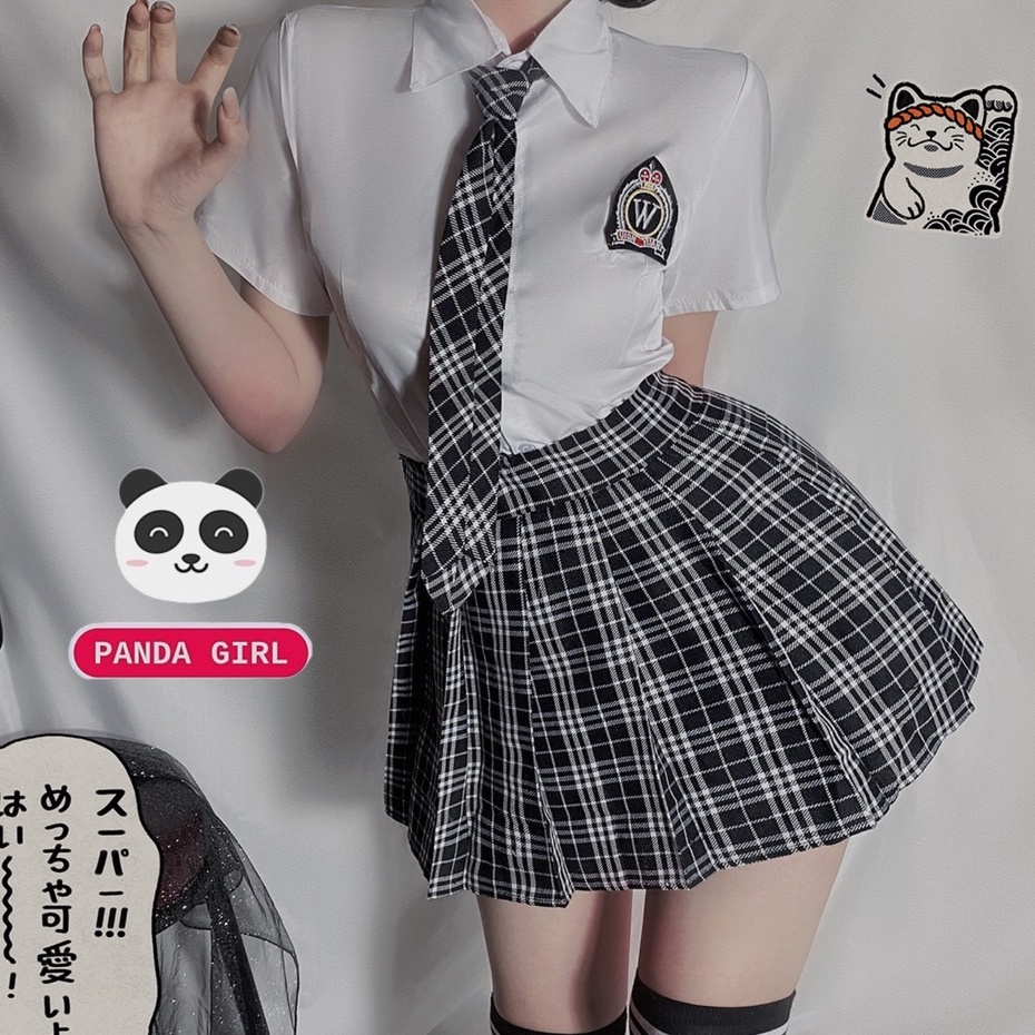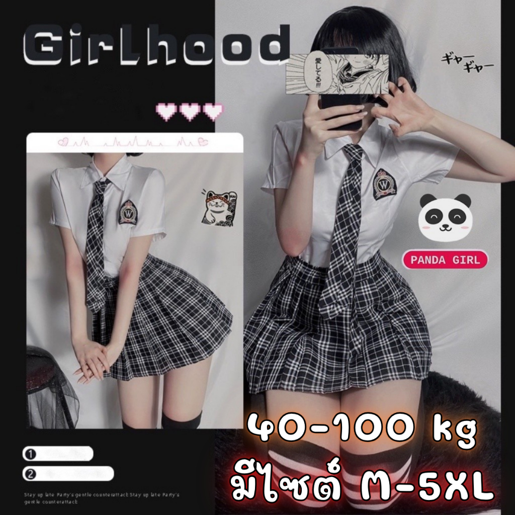 ชุดนักเรียนญี่ปุ่น 💫 มีไซต์ให้เลือก M-5XL 100kg ส่วนชิ้นล่างแนวกระโปรงบาน สก็อตแต่งชายลูกไม้ P-612