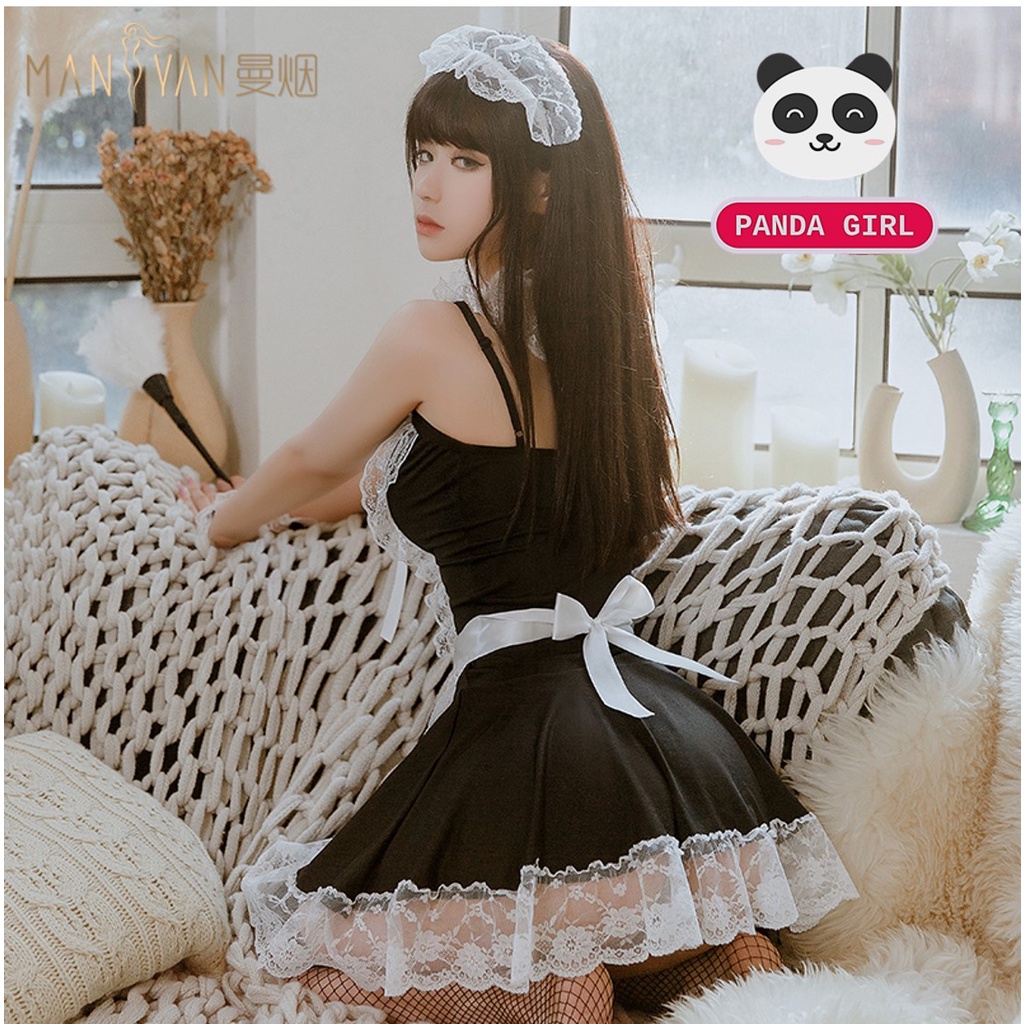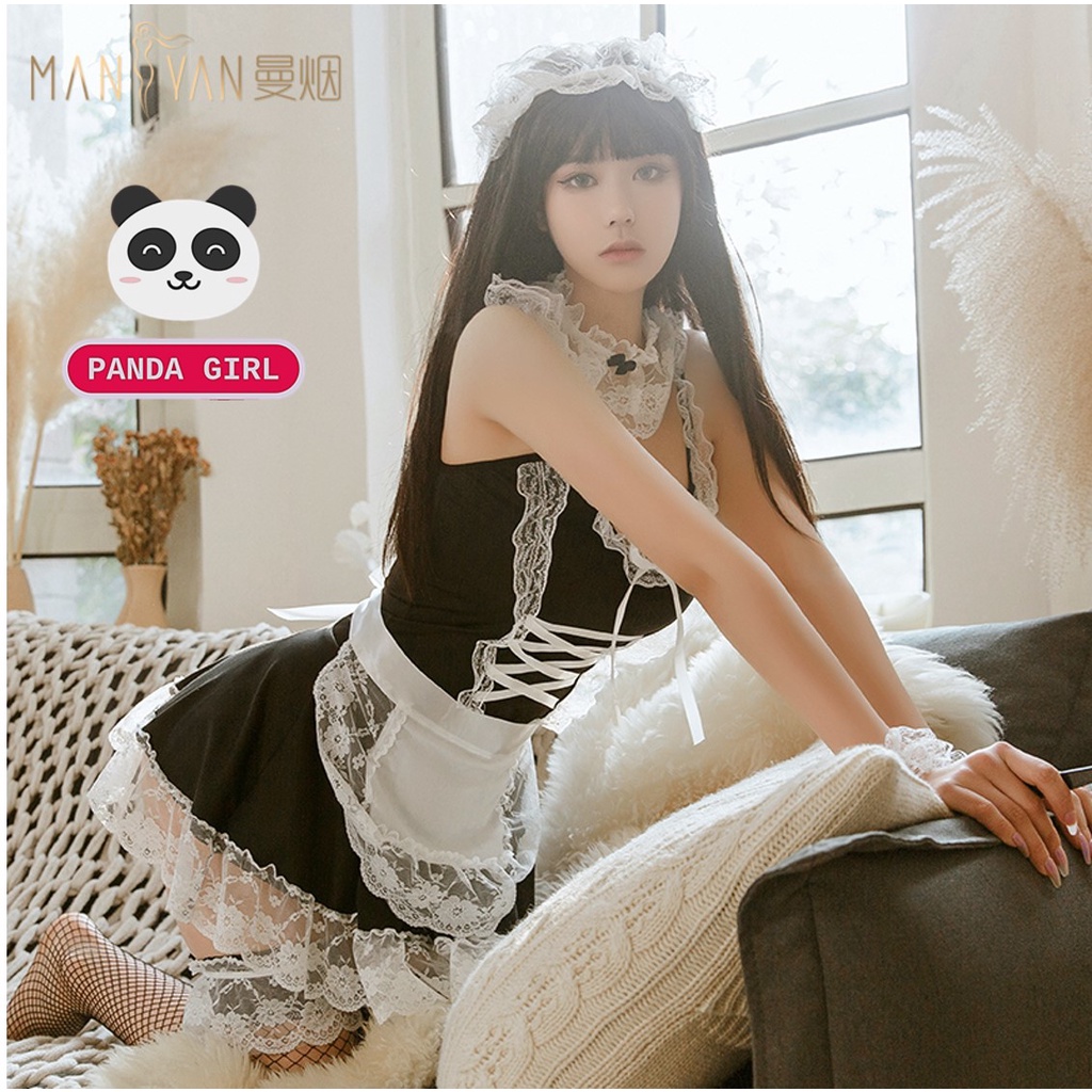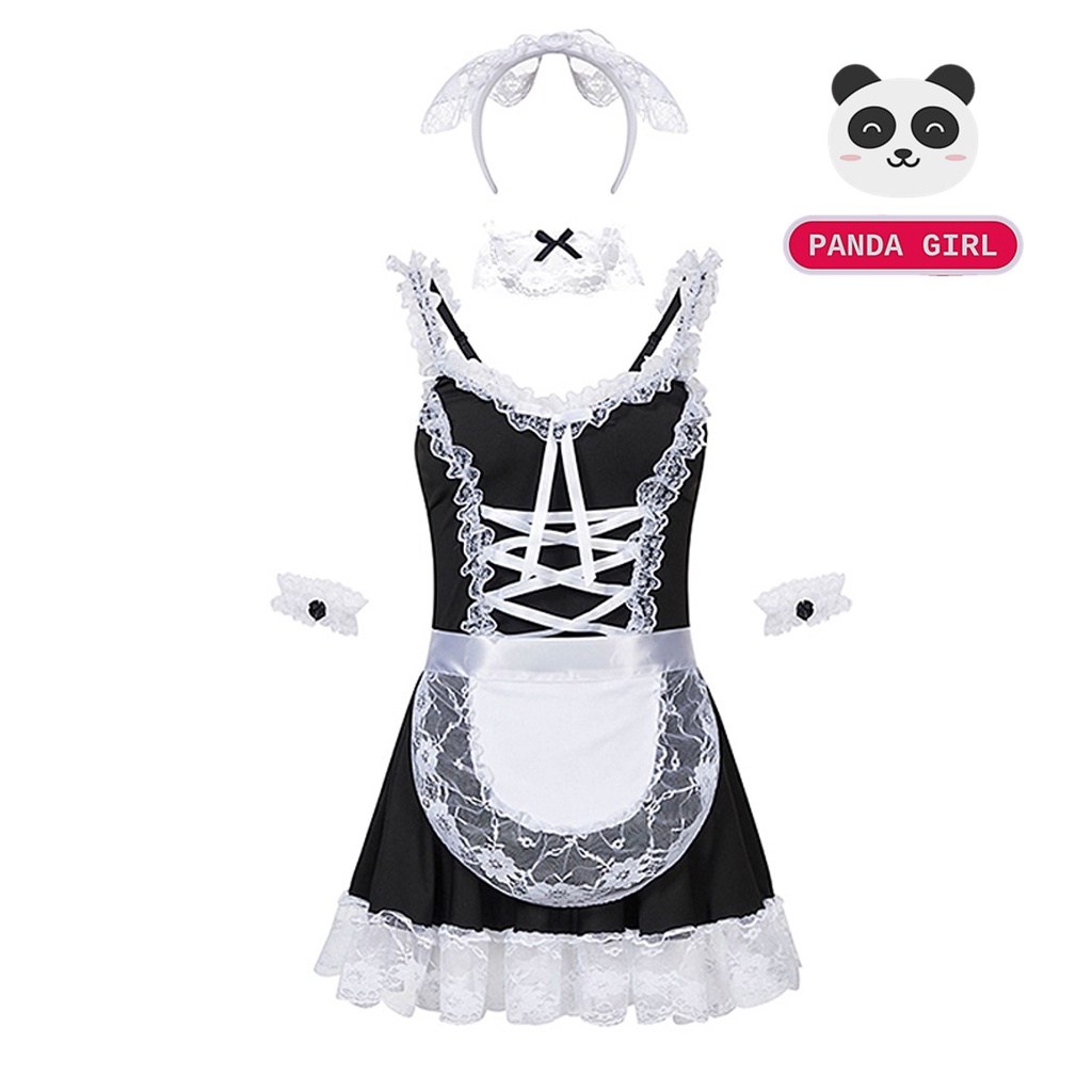 ชุดเมดแม่บ้าน ชุดนอนไม่ได้นอน ตกแต่งลูกไม้สีขาวทั้งตัว มาพร้อมอุปกรณ์เข้าเซตครบ P-026 ขายส่ง