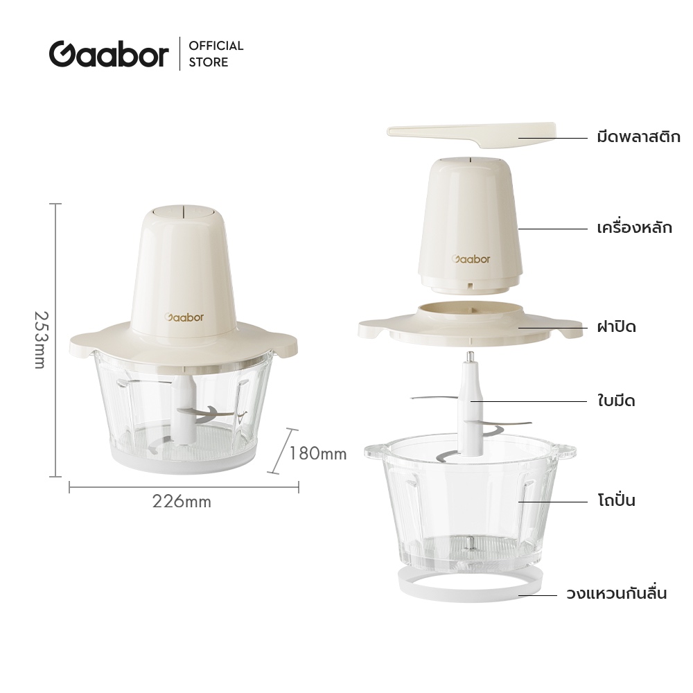 Gaabor เครื่องบด เครื่องบดเนื้อ Meat Grinders 2L เครื่องผสมอาหารไฟฟ้า เนื้อบด ผักบด เครื่องปั่นเนื้ออัตโนมัติ MG-15M01A